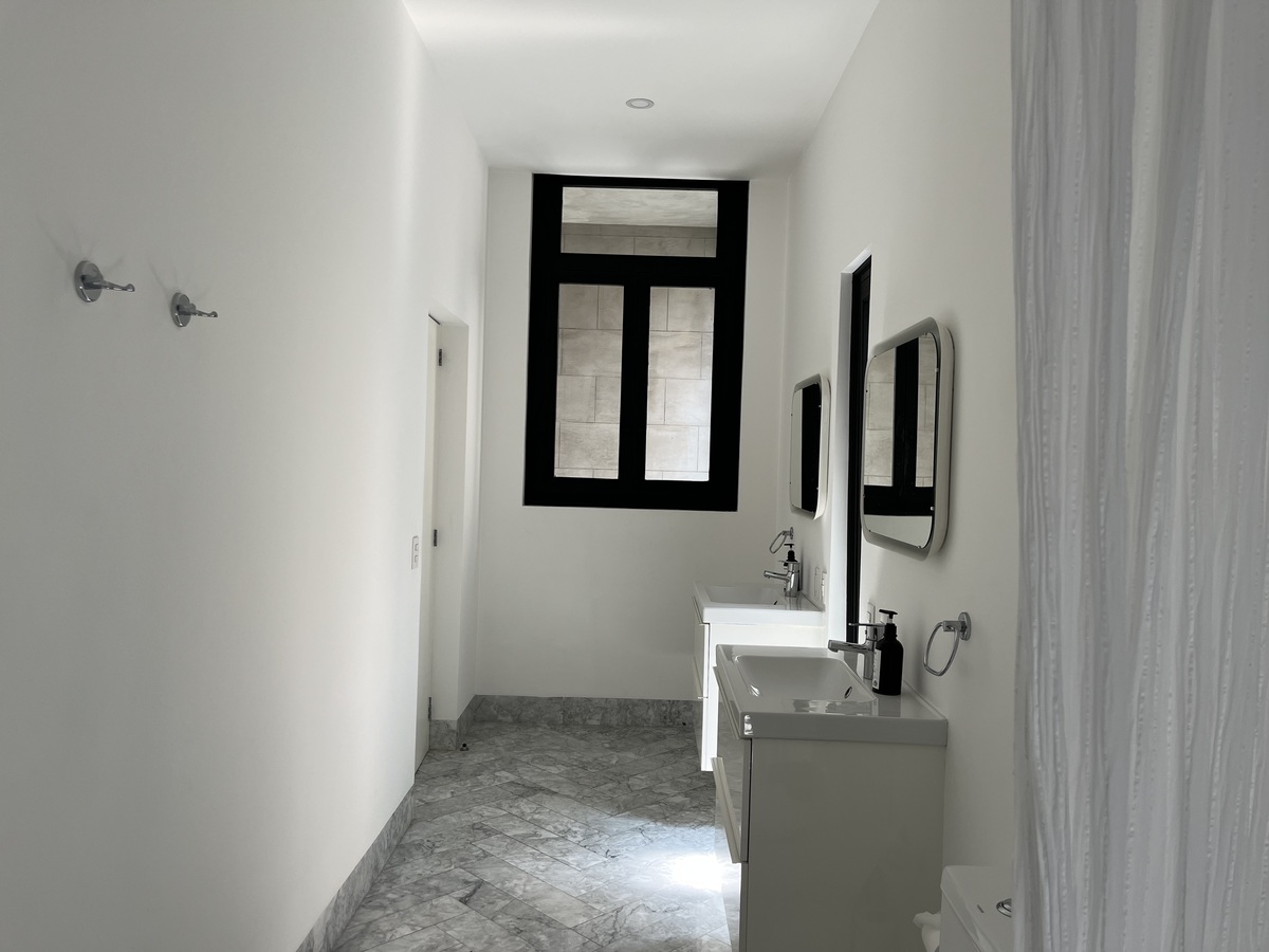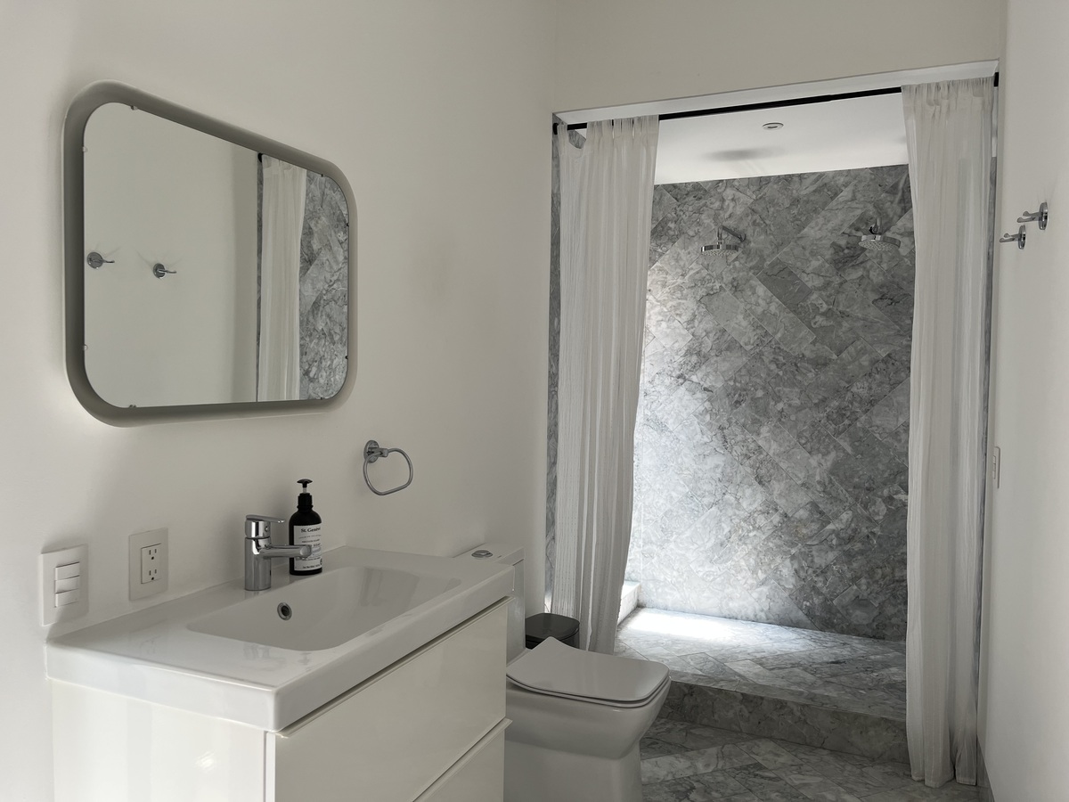 Se renta amuevblado y equipado con todo lo que se ve en las fotos. Es un espacio increíble no solo por su arquitectura sino por su diseño interior y sus espacios. 180m2 en dos niveles con un enorme patio privado. Es como tener una casa pero con los beneficios de pertenecer a un condominio en una de las mejores zonas de la ciudad. Cuanta con estancia amplia e ilumida con medio baño de visitas y acceso al patio privado. Cocina abierta hacia la estancia con exclentes acabados y equipamiento de primera. Mucho espacio de guardado y mucha área de trabajo. La terraza es un sueño! ideal para recibir visitas o pasar una velada increíble al aire libre. Para subir a la planta alta hay una espectacular escalera de caracol de puro marmol con un tragaluz que hace que este departamento sea único e irrepetible en su tipo. En la Planta alta están las dos recámaras cada una con su baño y vestidor. La principal tiene un walking closet que es de revista! y un baño enorme con doble regadera. El baño de la segunda recámara o estudio, tiene tina!