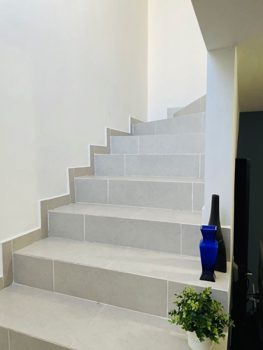Full bathroom on the upper floor and another half bathroom on the ground floor.