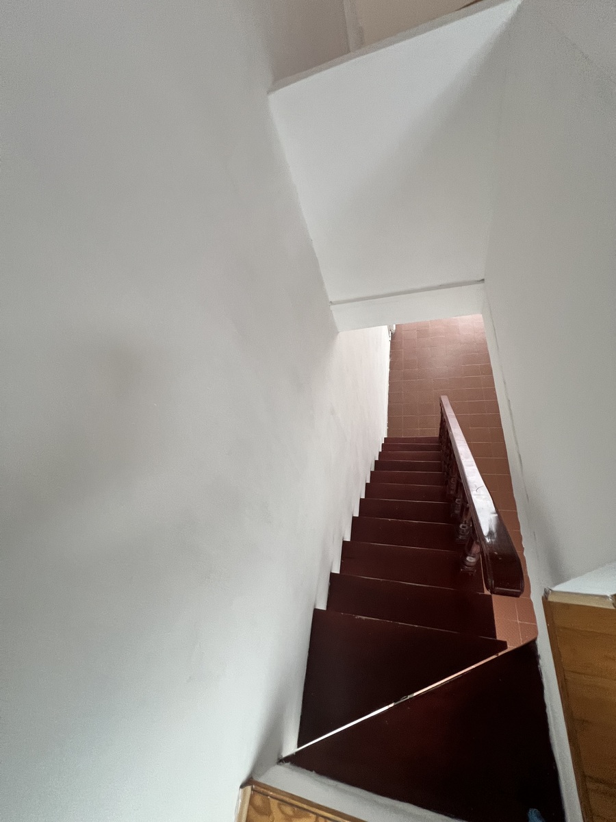 It has two floors with a rear terrace, on the upper floor there is a large space and a half bathroom.