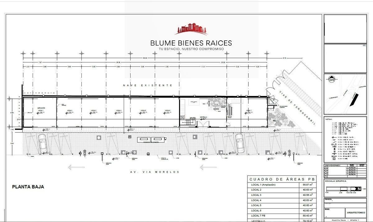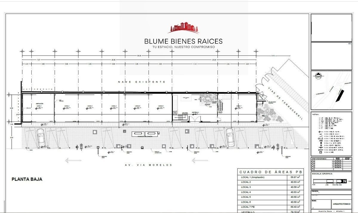 En PLANTA BAJA quedan disponibles en total 154.99 m2, de los cuales el local 2 mide (38.47 m2), local 3 (38.89 m2) local 04 (38.86 m2), y local 05 (38.86m2)