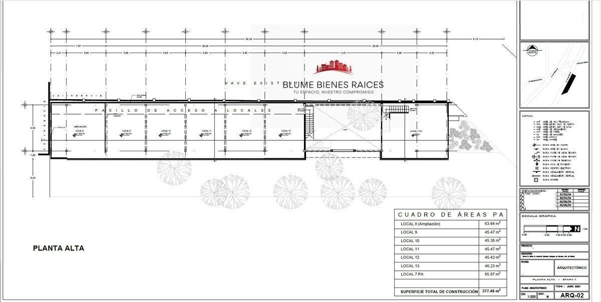 En PLANTA ALTA quedan disponibles en total 281.61 m2, de los cuales el local 8 mide (60.26 m2), local 9 (44.26 m2) local 10 (44.19 m2), local 11 (44.27 m2) local 12 (44.23 y local 13 (44.23) .