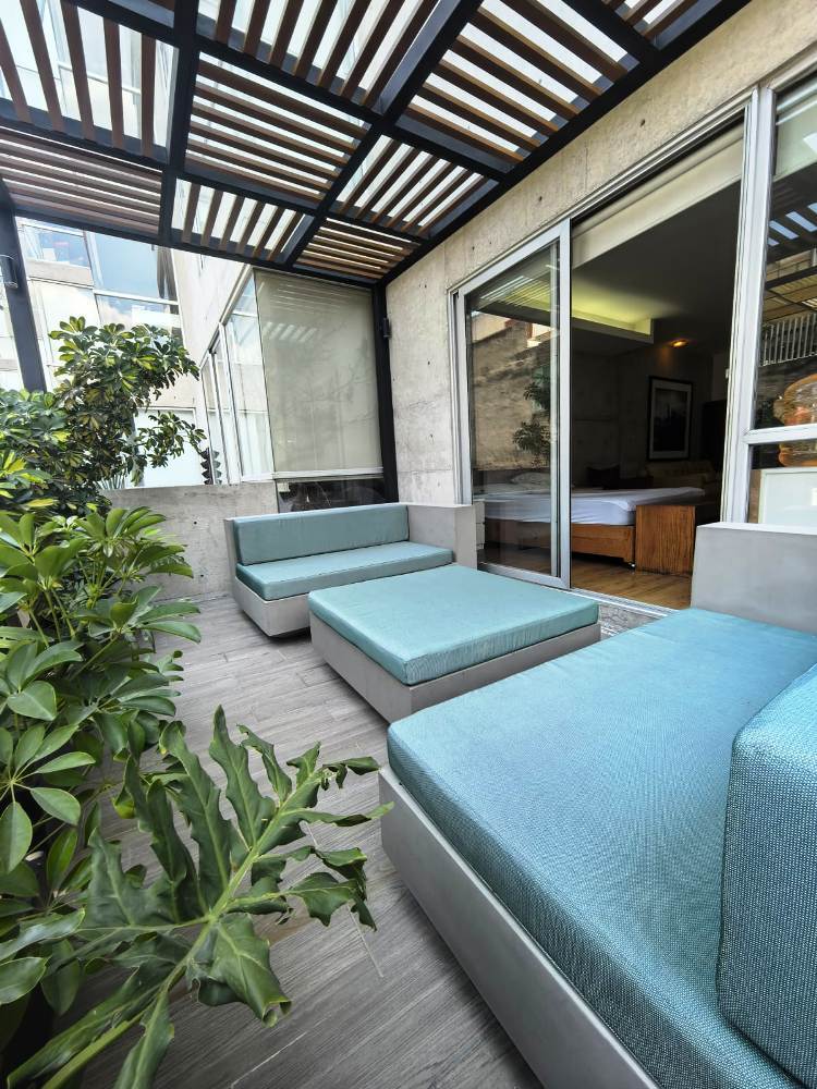 Renta agradable LOFT amueblado con terraza y amenidades. En un área totalmente abierta, se distribuye cómodamente; estancia, cocina integral abierta, área de lavado. Área abierta, para la recamara y un baño completo, con salida a una terraza techada de 10 m2.