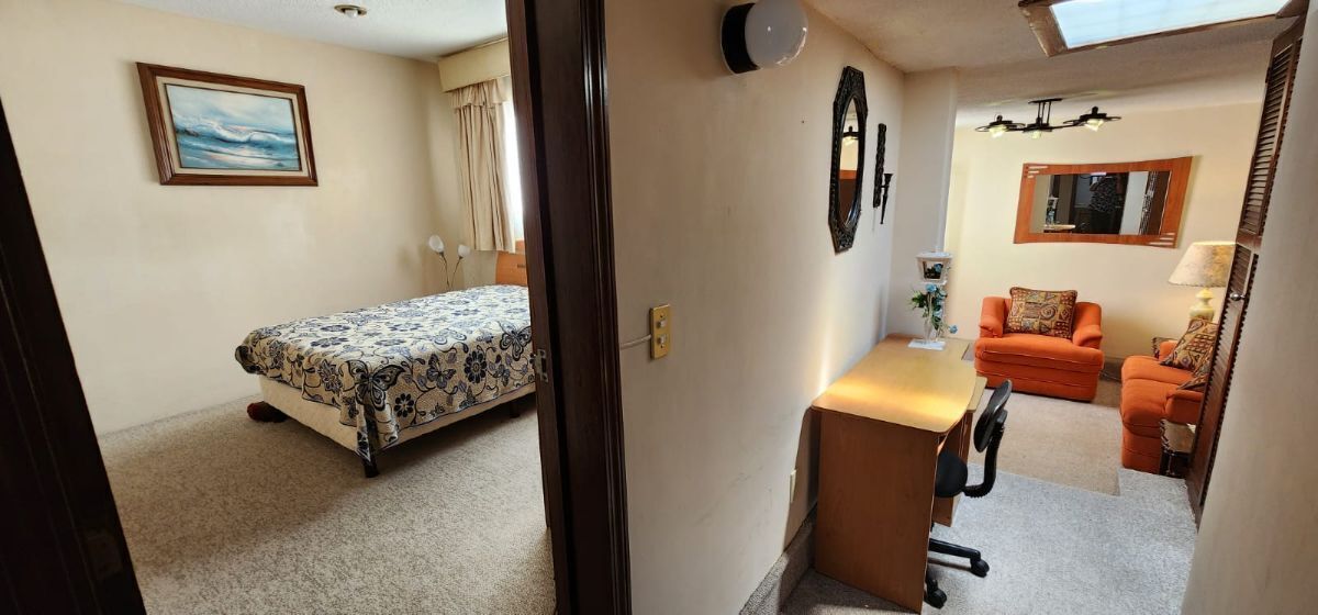 Consta de cocina equipada, con refrigerador, desayunador, sala pequeña, pantalla, baño completo y recámara con closet amplio, además tiene un lugar de estacionamiento.