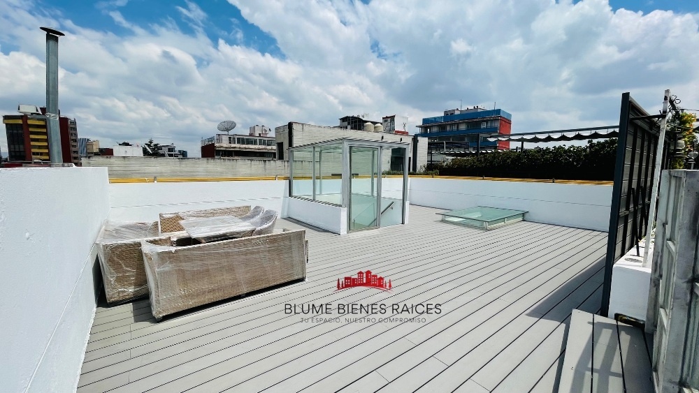 Renta moderno Pent House amueblado, único, recién remodelado e iluminado. La área habitable son 200 m2.