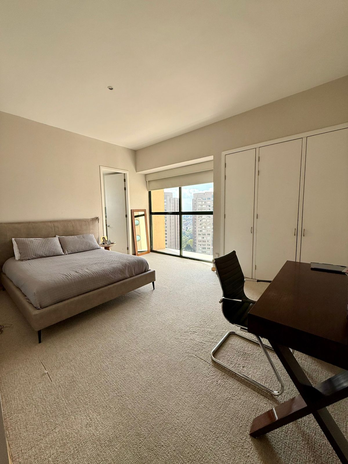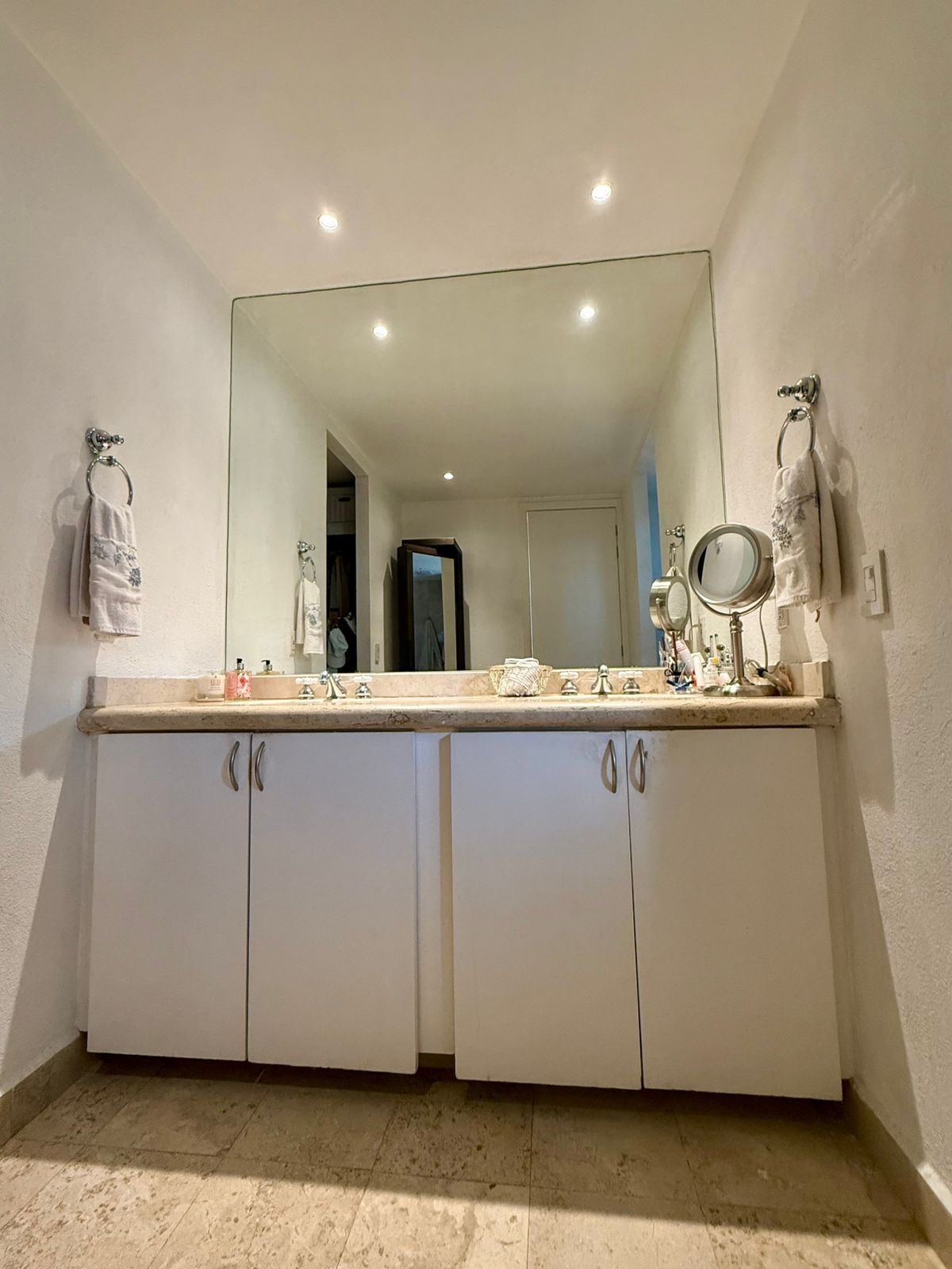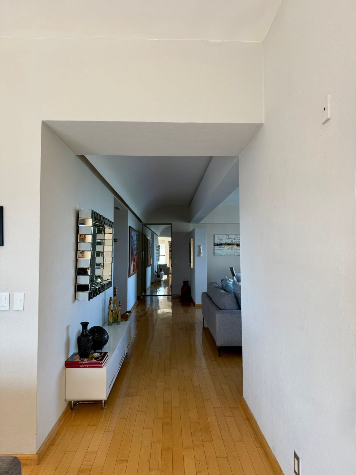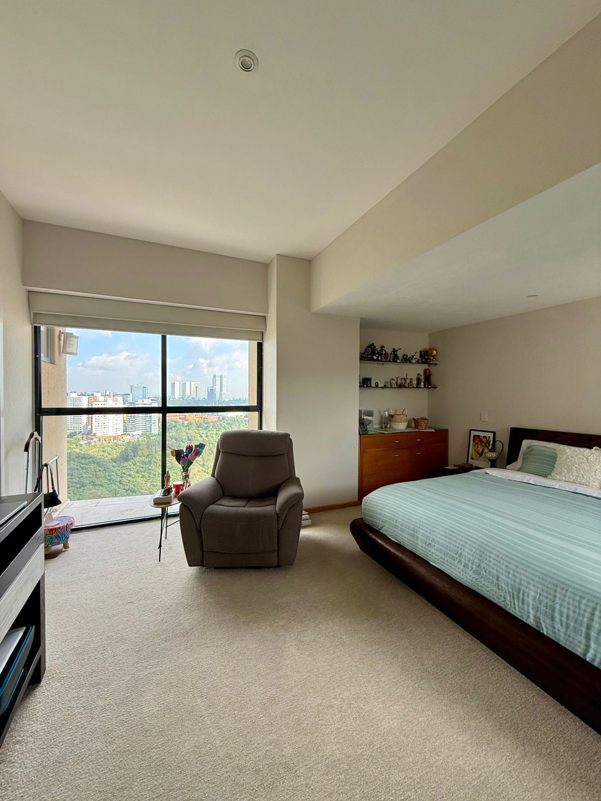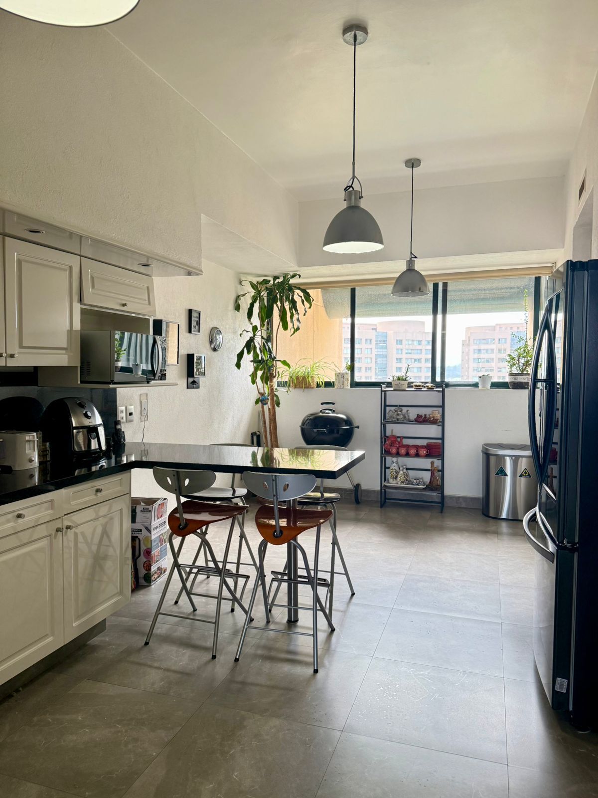 Departamento en piso alto y vista verde muy bonita. Son 260 m², tres recámaras, la principal con vestidor todas con baño y medio baño de visitas, sala comedor, Family cocina con espacio par ante comedor cuarto de lavado cuarto de Servicio, tres estacionamientos y bodega. El departamento cuenta con una terraza.