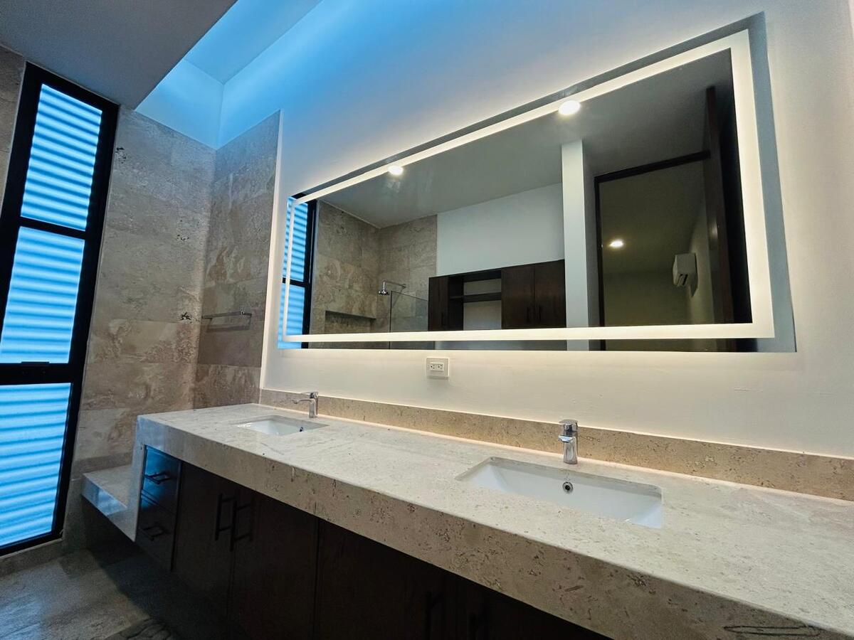 -Habitación principal con baño, lavabo doble y amplio closet vestidor.