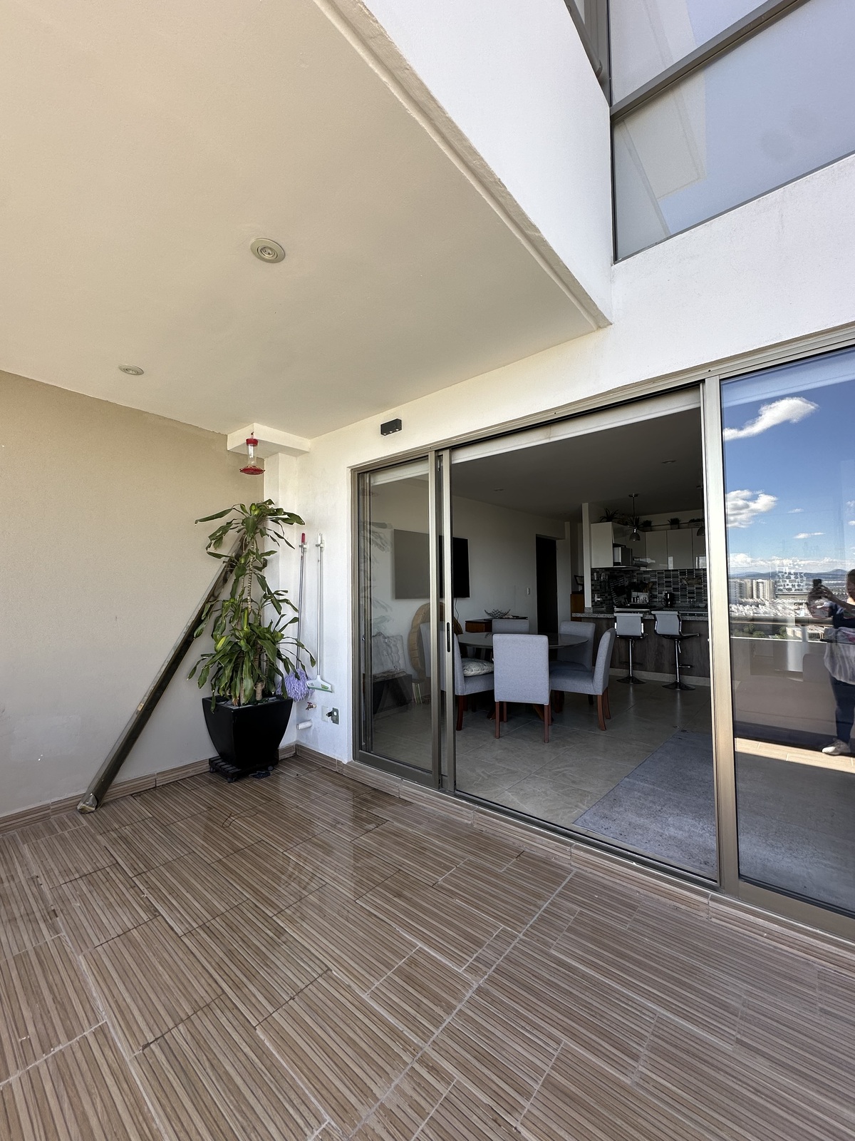 Tiene una superficie de 106 metros cuadrados al entrar te recibe la sala de buen tamaño, comedor muy iluminado con salida a hermosa terraza amplia con preciosa vista a la Ciudad, moderna cocina equipada con barra desayunador, recamara principal con baño y vestidor, recamara secundaria con closet grande, otro baño completo que da servicio a la segunda recamara y área social, cuarto de lavado.