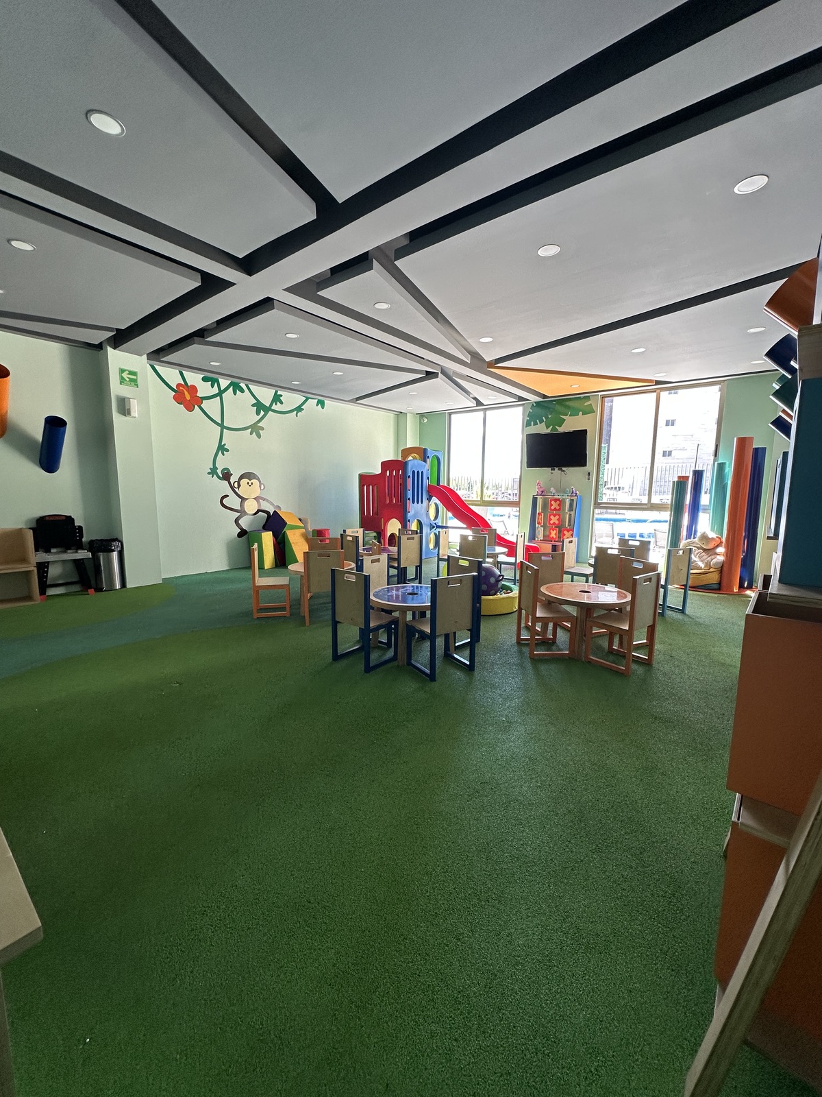Attractive amenities for family gatherings, enjoy its heated pool and wading pool, bar area, covered terrace, outdoor restrooms for men and women, covered swimming lane, shower, multipurpose room with equipped kitchen, children's playroom, café, restrooms for men and women, equipped gym, large roof garden, coworking space, game room, spa, sauna, steam room, jacuzzi, changing rooms, communal garden.