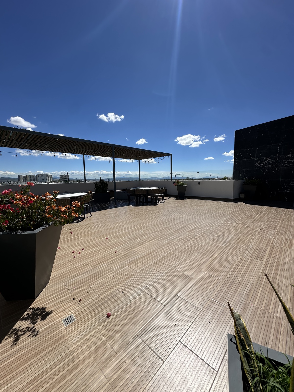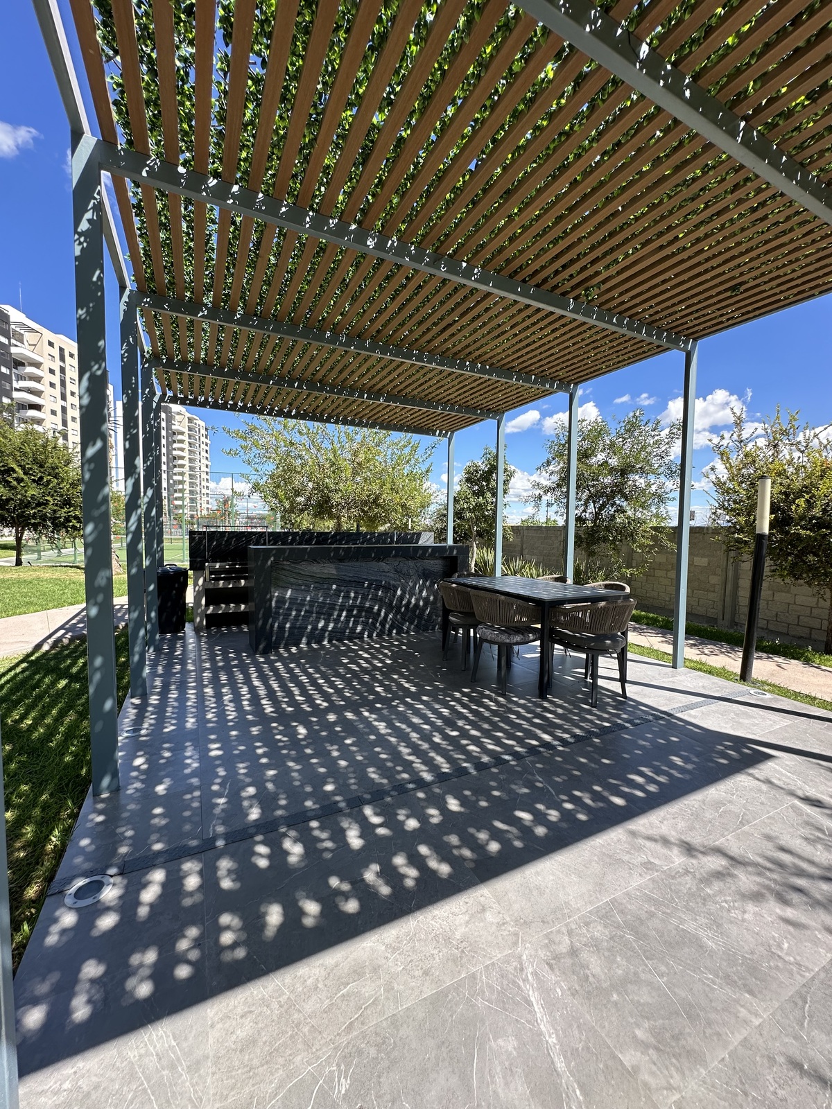 Dos canchas de pádel, multi -cancha, área de juegos infantiles, dos áreas de asadores con barra y mesa, baño para hombres y para mujeres, dos área para mascotas, estacionamiento de visitas, elevadores, vigilancia 24/7, acceso controlado, entrada con biométricos a tu edificio y casa club.
