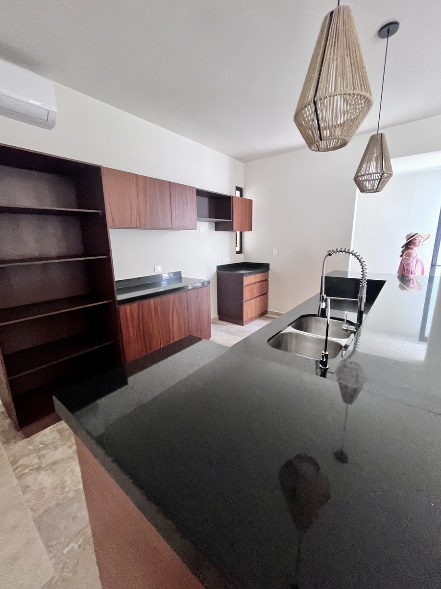 • Cocina equipada con isla, alacena y carpintería instalada.