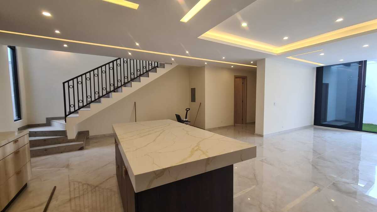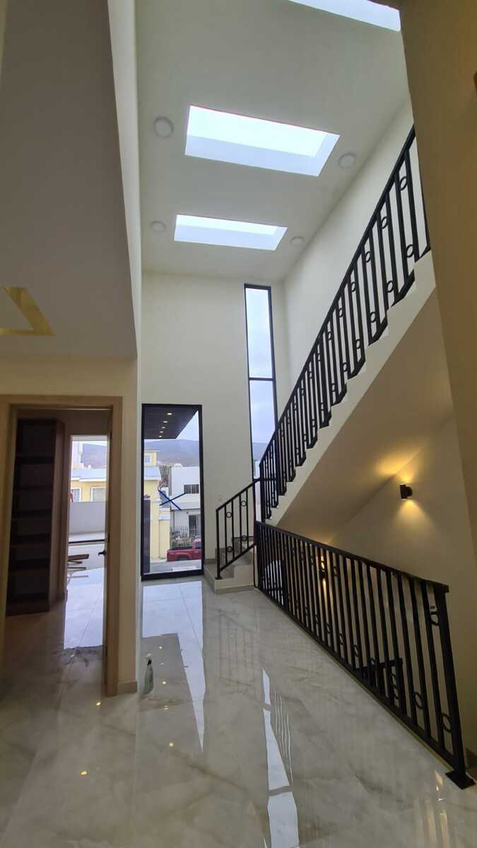Toda la casa cuenta con acabados de primera calidad, loseta, plafones, tragaluces, ventanas con vidrios gray y aluminio negro, barandales de herreria, iluminación con spots y mangueras led, roof top con loseta y pasto artificial, pintura interior y exterior con diseño, etc.