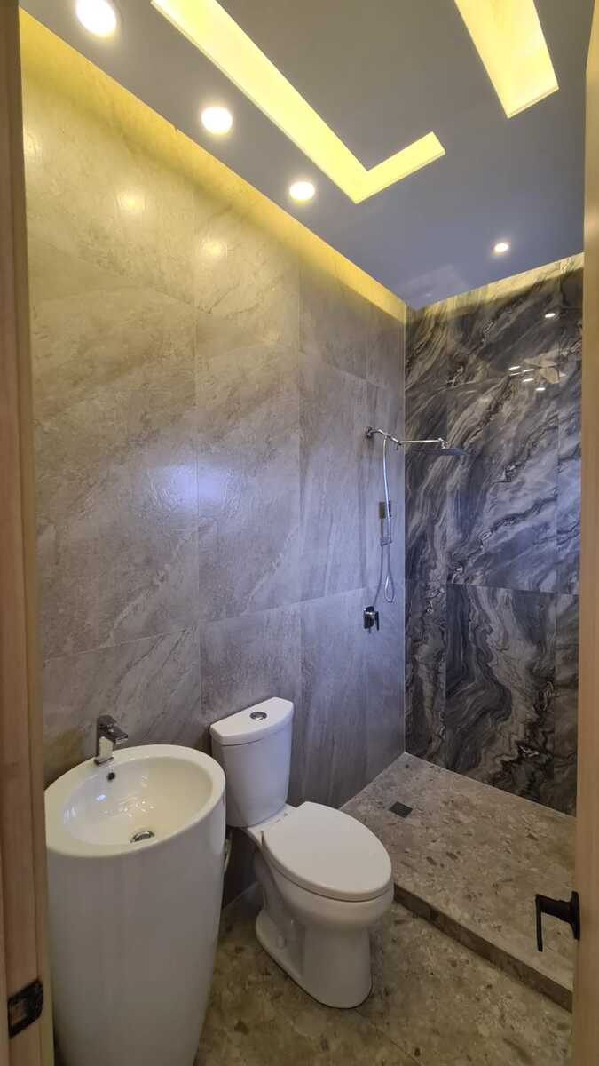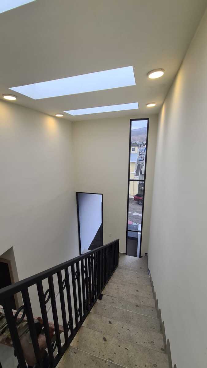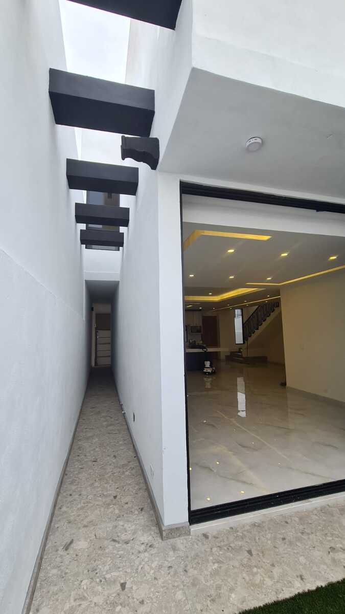 The entire house has high-quality finishes, tiles, ceilings, skylights, windows with gray glass and black aluminum, wrought iron railings, lighting with spots and LED strips, a rooftop with tiles and artificial grass, interior and exterior paint with design, etc.