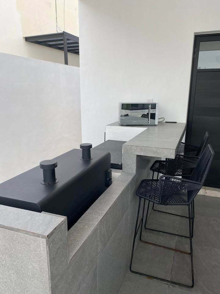 •Terrazas techadas junto a alberca con barra y espacio para asador y área de juegos .