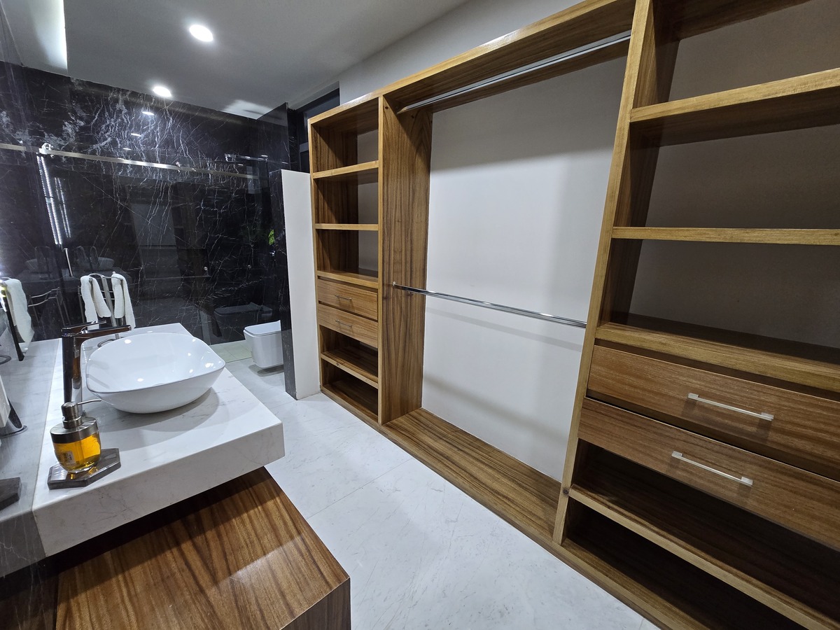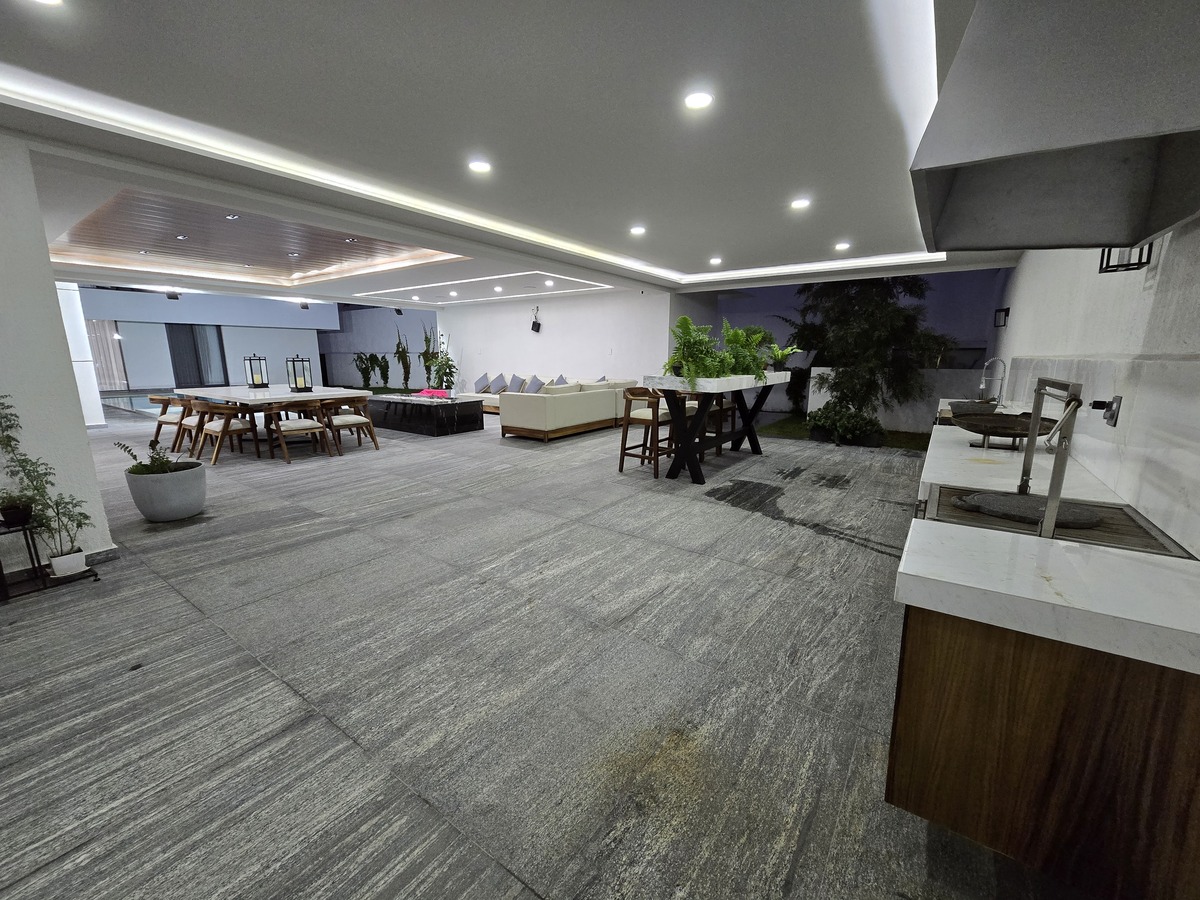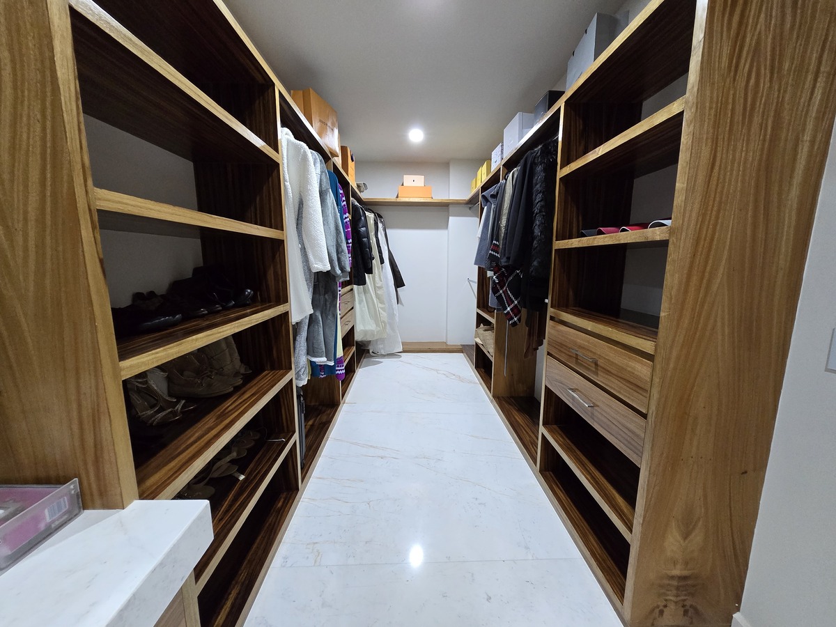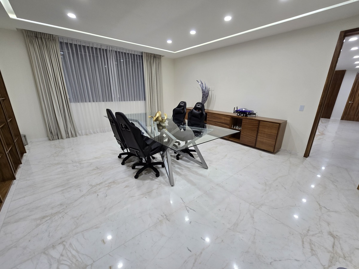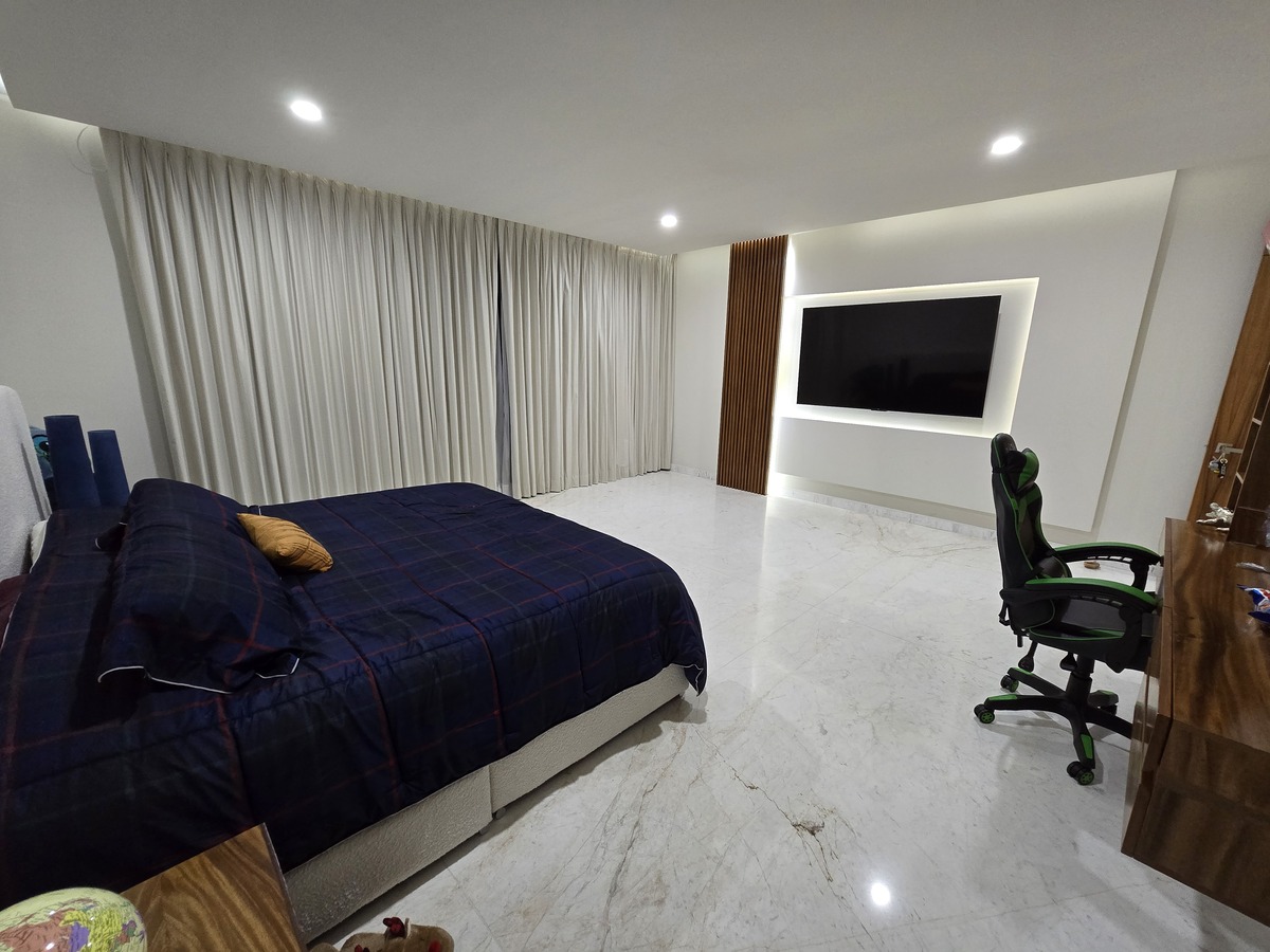 The tour begins with an elegant foyer accompanied by a wooden lattice that leads to the guest half-bath. On this level, there is a large bedroom with a full bathroom and dressing room, ideal for guests or older family members. The office, with parota wood carpentry, offers a sophisticated and tranquil environment.