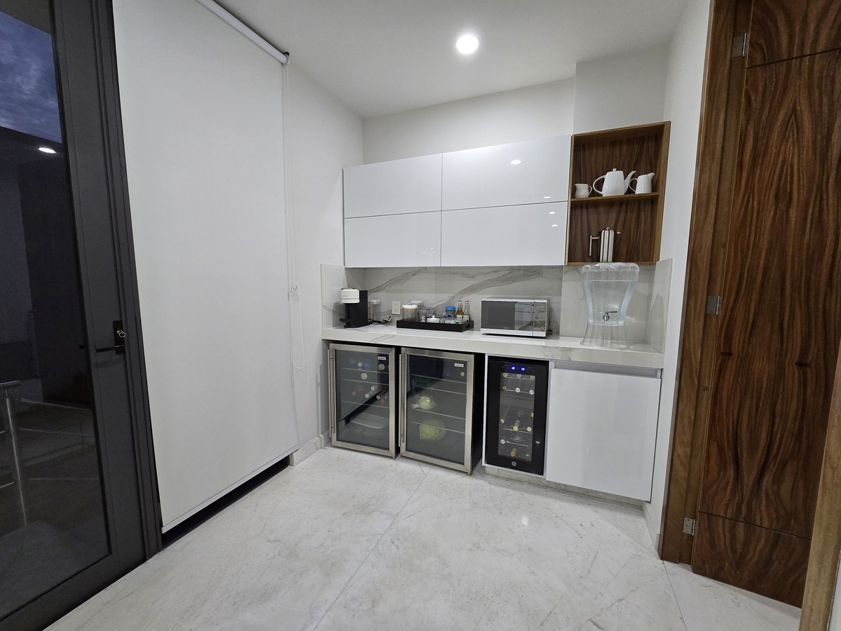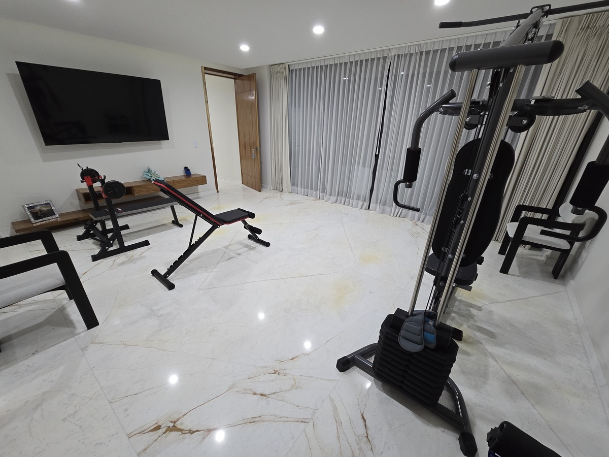 Every detail reflects exclusivity and quality: natural marble floors, parota wood carpentry, Italian granite bars and countertops, tempered glass windows, gas fireplaces, warm architectural lighting, and an elevator that connects the three levels.