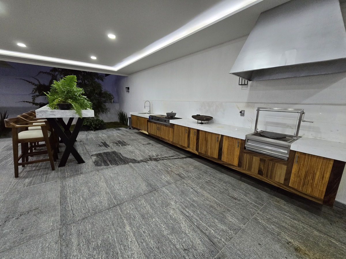 Cada detalle refleja exclusividad y calidad: pisos de mármol natural, carpintería en madera de parota, barras y cubiertas en granito italiano, ventanales de cristal templado, chimeneas de gas, iluminación arquitectónica cálida y un elevador que conecta los tres niveles.