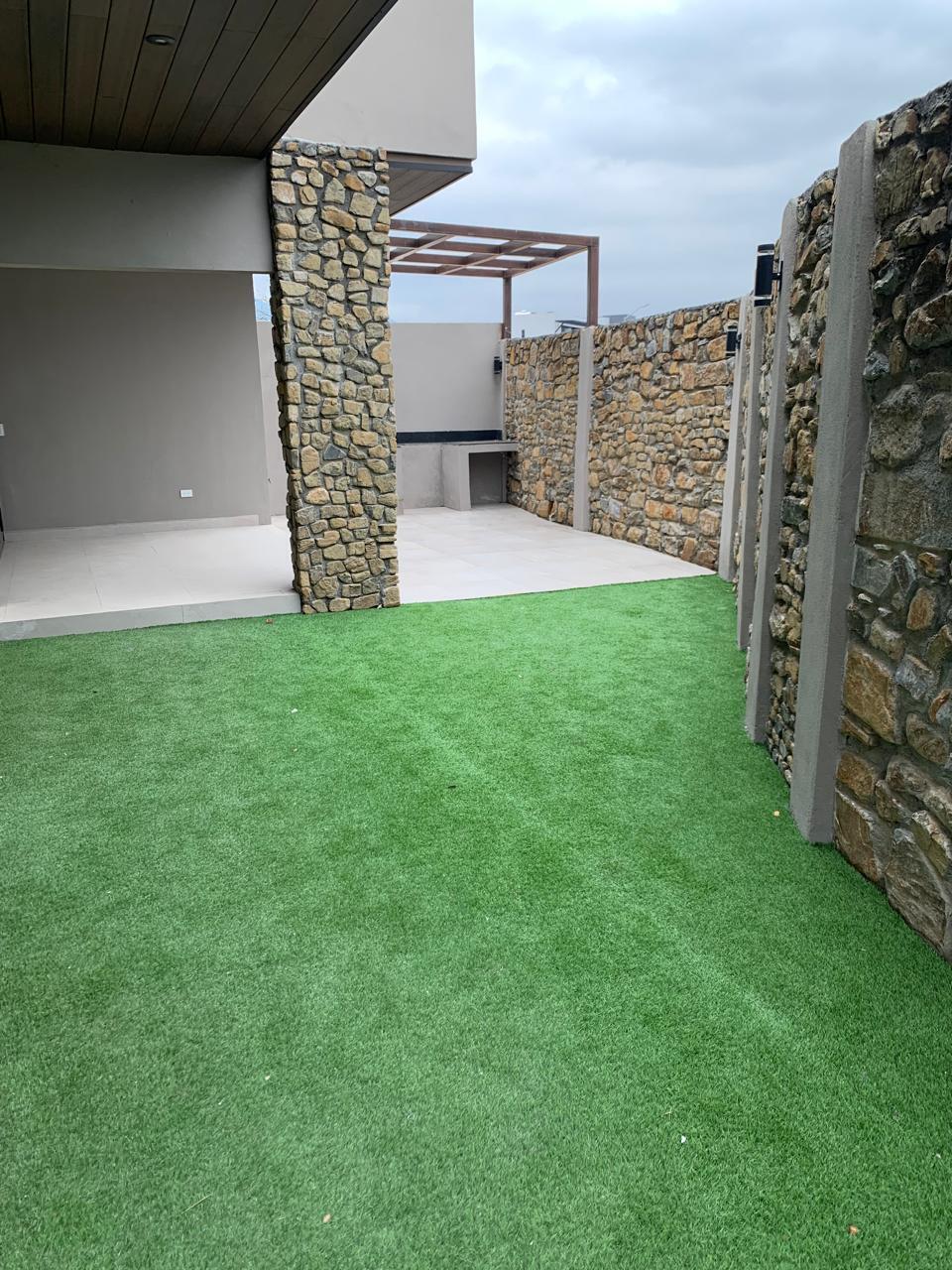 - terraza techada con asador y jardín junto a área social