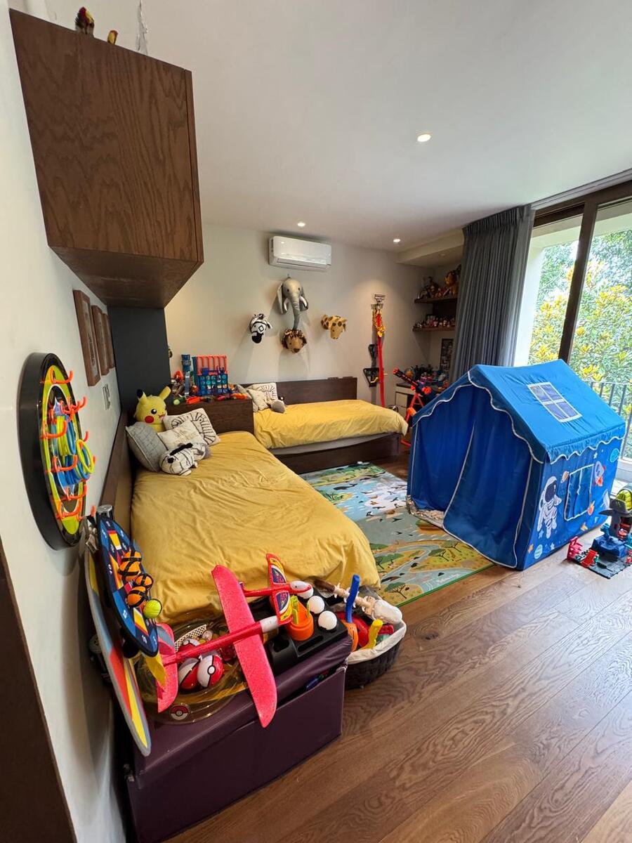 Amenidades exclusivas: alberca climatizada, gimnasio con sauna, cine VIP, canchas de tenis y squash, salón de eventos, juegos infantiles, andadores arbolados y seguridad 24/7.