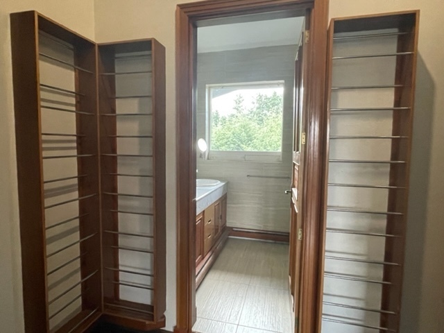 It has 4 bedrooms, each with a full bathroom and walk-in closet. Two of them are very spacious and have wooden floors. Nice garden surrounding the house, with a covered terrace and barbecue.
