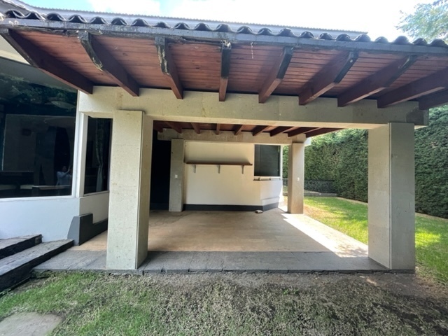 Cuenta con 4 recámaras, cada una con baño completo y walking clóset. Dos de ellas muy amplias y con pisos de madera. Lindo jardín rodeando la casa, con terraza techada y asador.