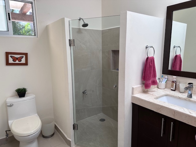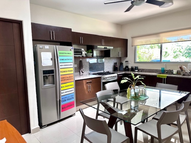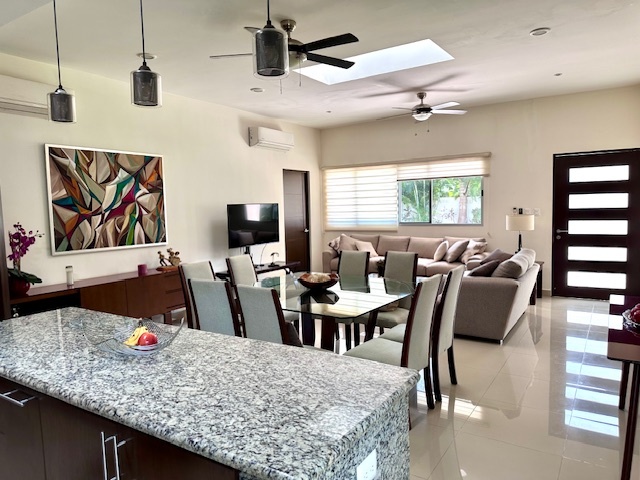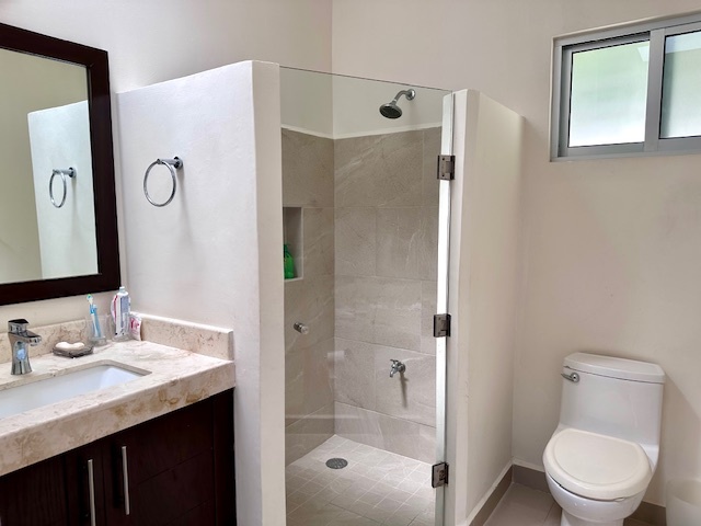 Both houses are equipped with air conditioning in all areas, fans, curtains, granite countertops in the kitchen, garbage disposal, drinking water filter, bathrooms with stone countertops and tempered glass enclosures. Oak carpentry and Helvex faucets.