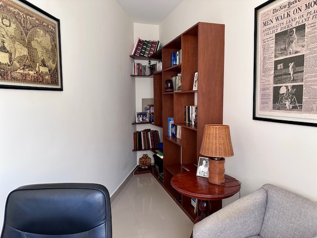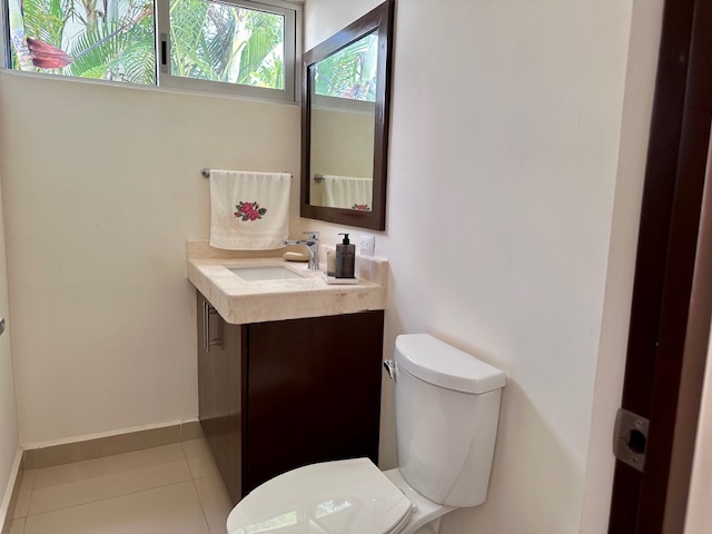 Spacious living and dining room, half bathroom for guests, fully equipped kitchen, very spacious main bedroom with a view of the garden, walk-in closet, full bathroom, office area.
