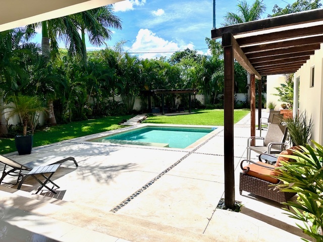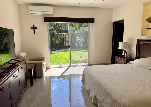 Las recámaras tienen vistas a áreas verdes, la principal con terraza y salida hacia el jardín y piscina.