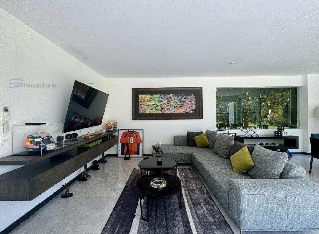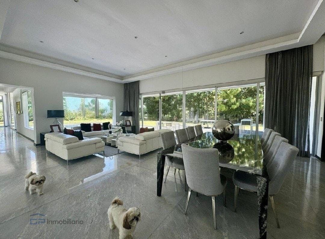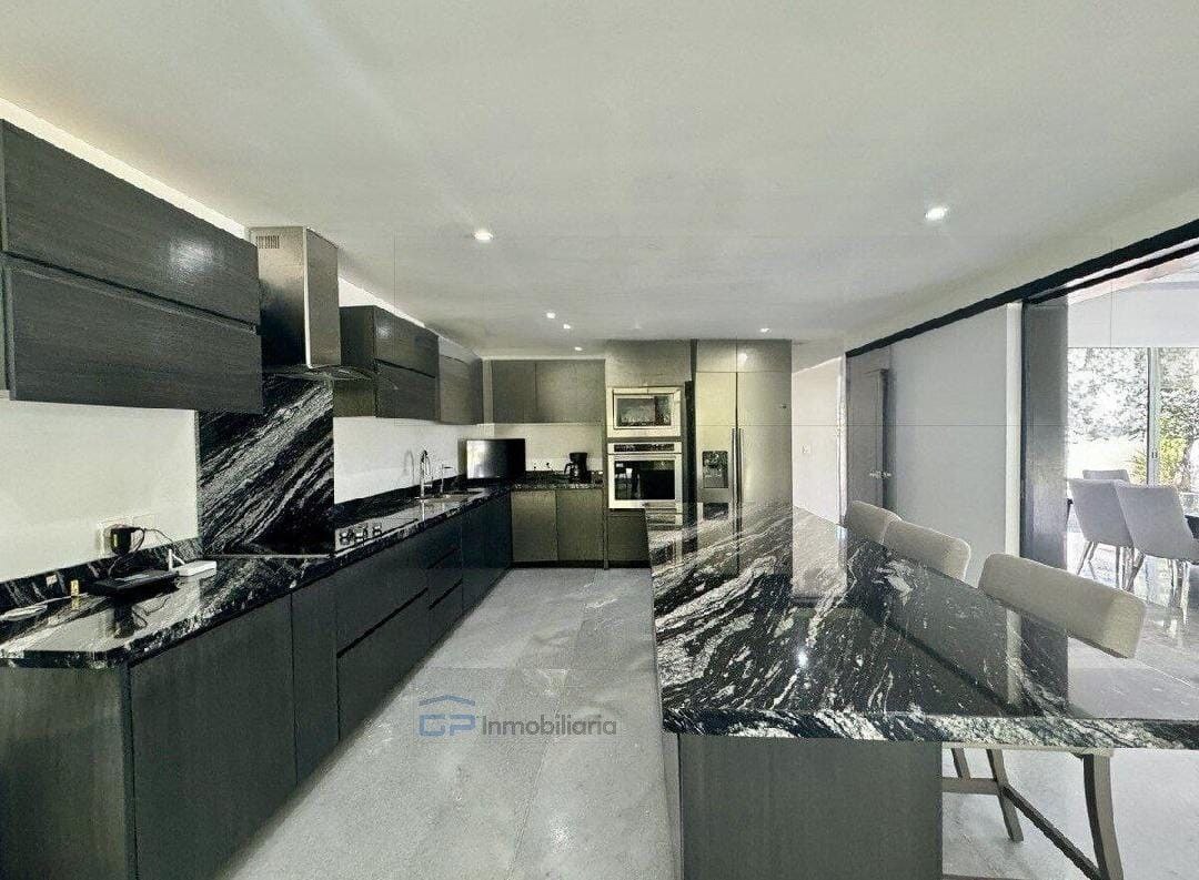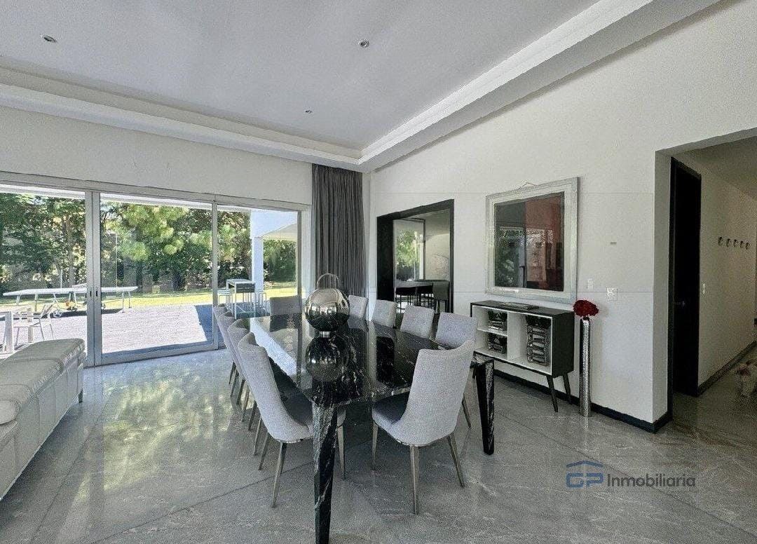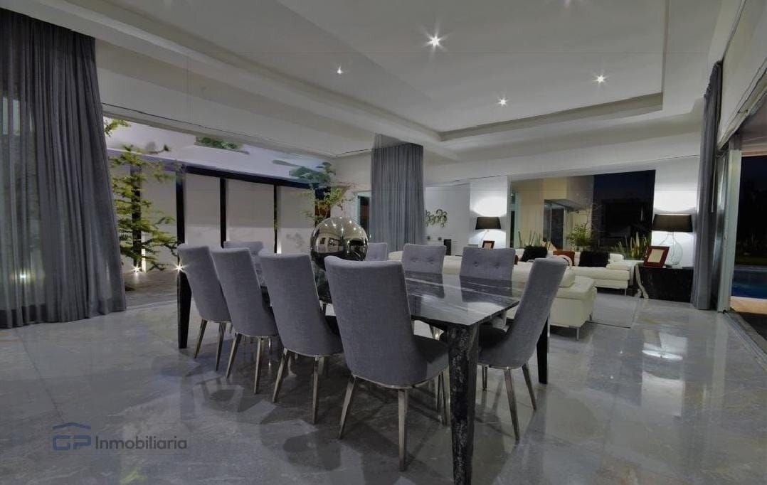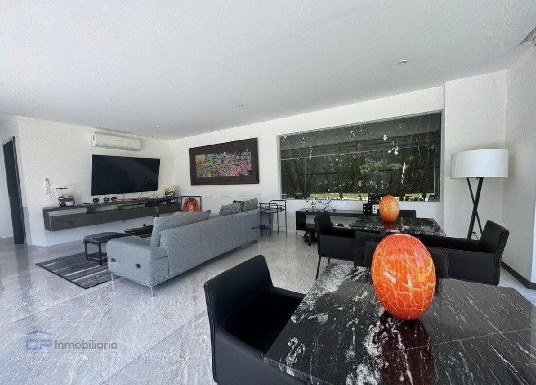 Parking for 4 covered cars + 4 uncovered, main access, half bathroom, TV room, and game area with air conditioning, very spacious living room and dining room with an interior wooded patio, integral kitchen with granite countertops and breakfast area, pantry, and exit to a covered terrace. From any of the social areas, there is an exit to the pool area with a deck for sun loungers and ample space for tables and lounge areas.