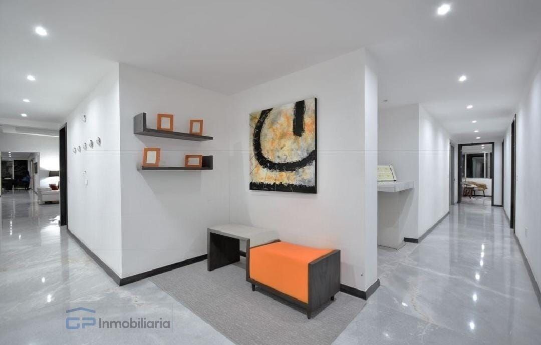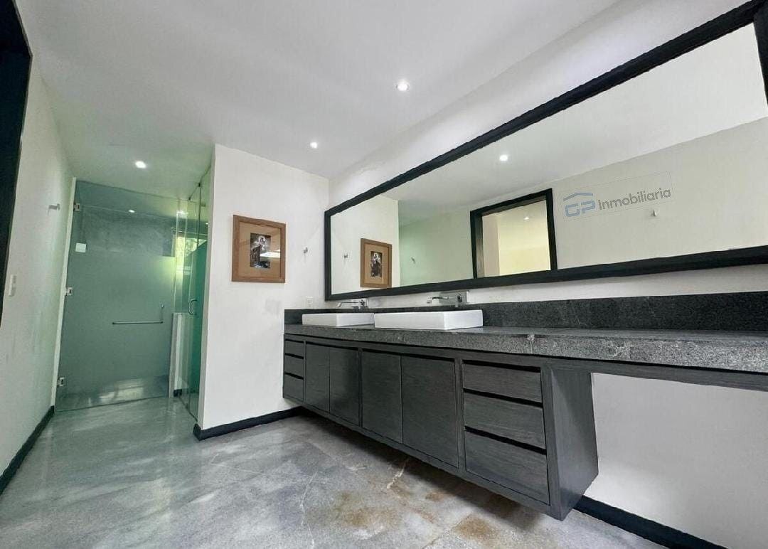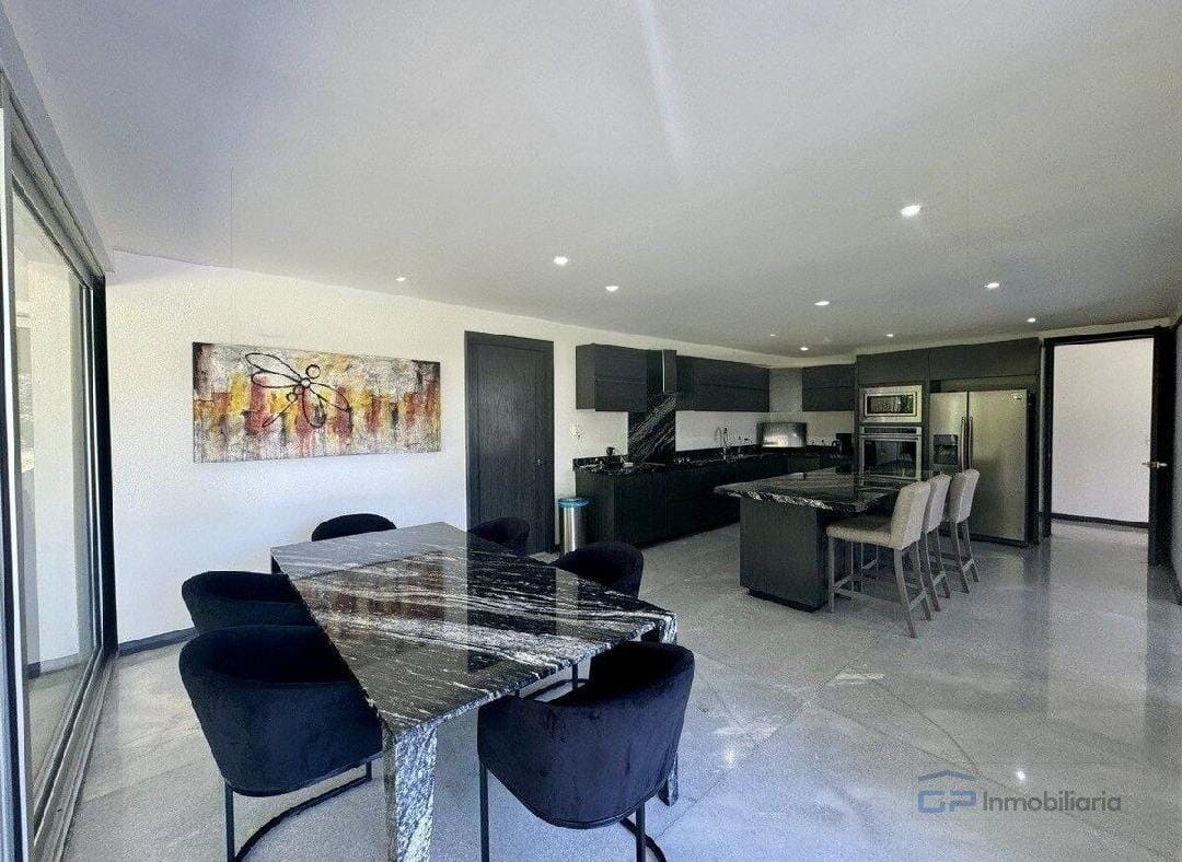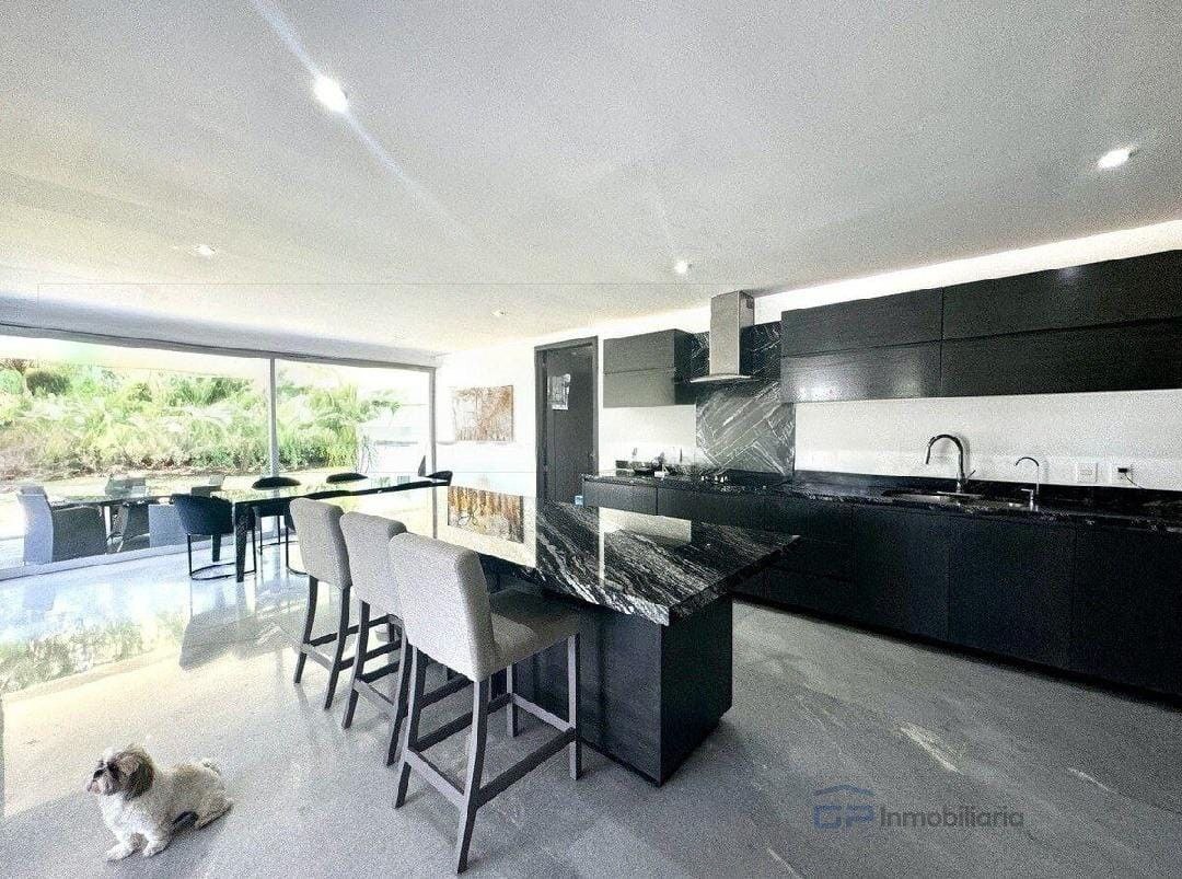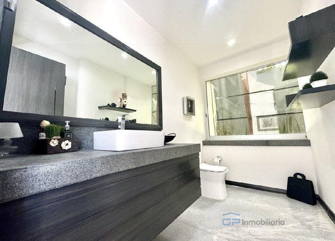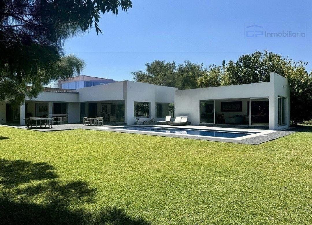 Parking for 4 covered cars + 4 uncovered, main access, half bathroom, TV room, and game area with air conditioning, very spacious living room and dining room with an interior wooded patio, integral kitchen with granite countertops and breakfast area, pantry, and exit to a covered terrace. From any of the social areas, there is an exit to the pool area with a deck for sun loungers and ample space for tables and lounge areas.