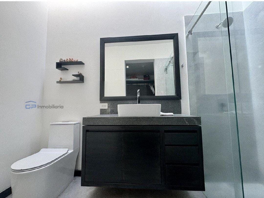 Recámara principal, con espacio para estudio, aire acondicionado, salida a jardín, vestidor muy amplio con isla central y baño completo.