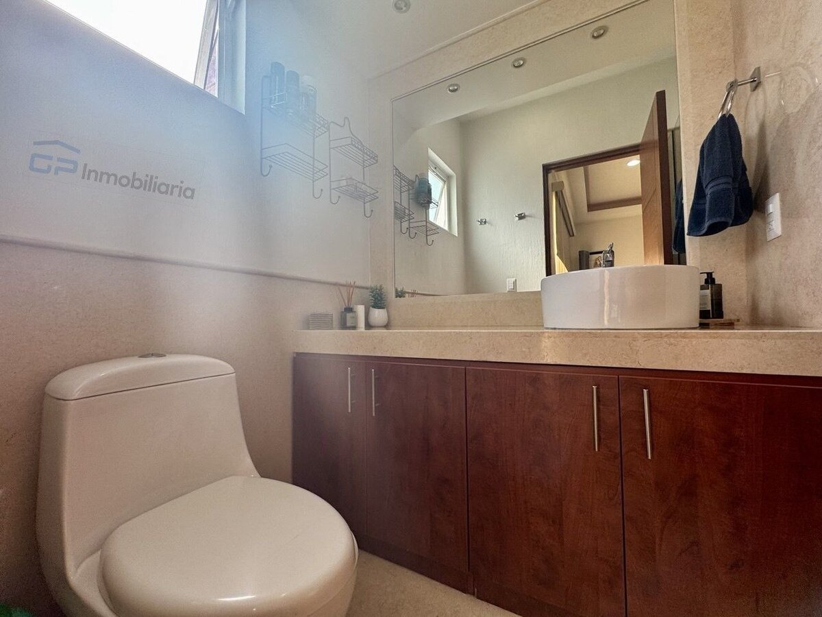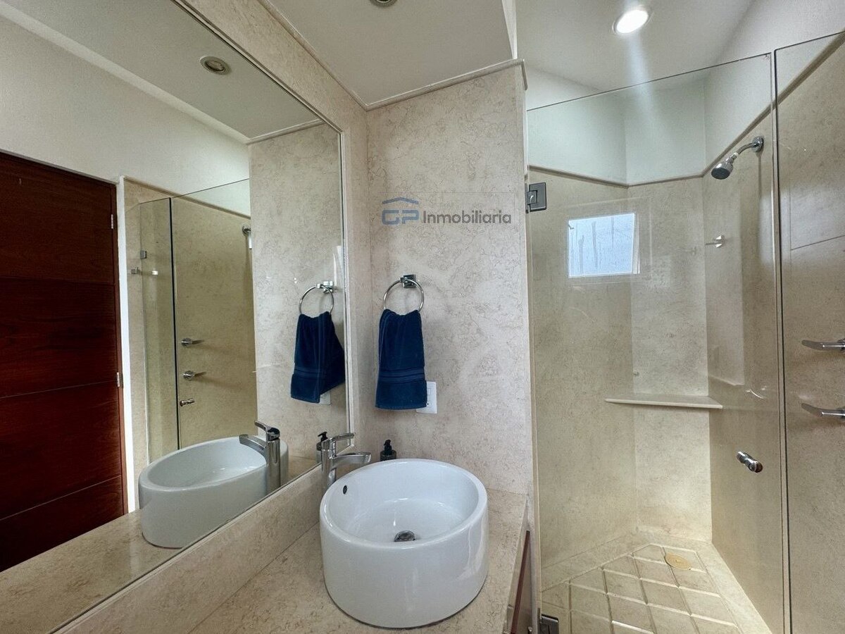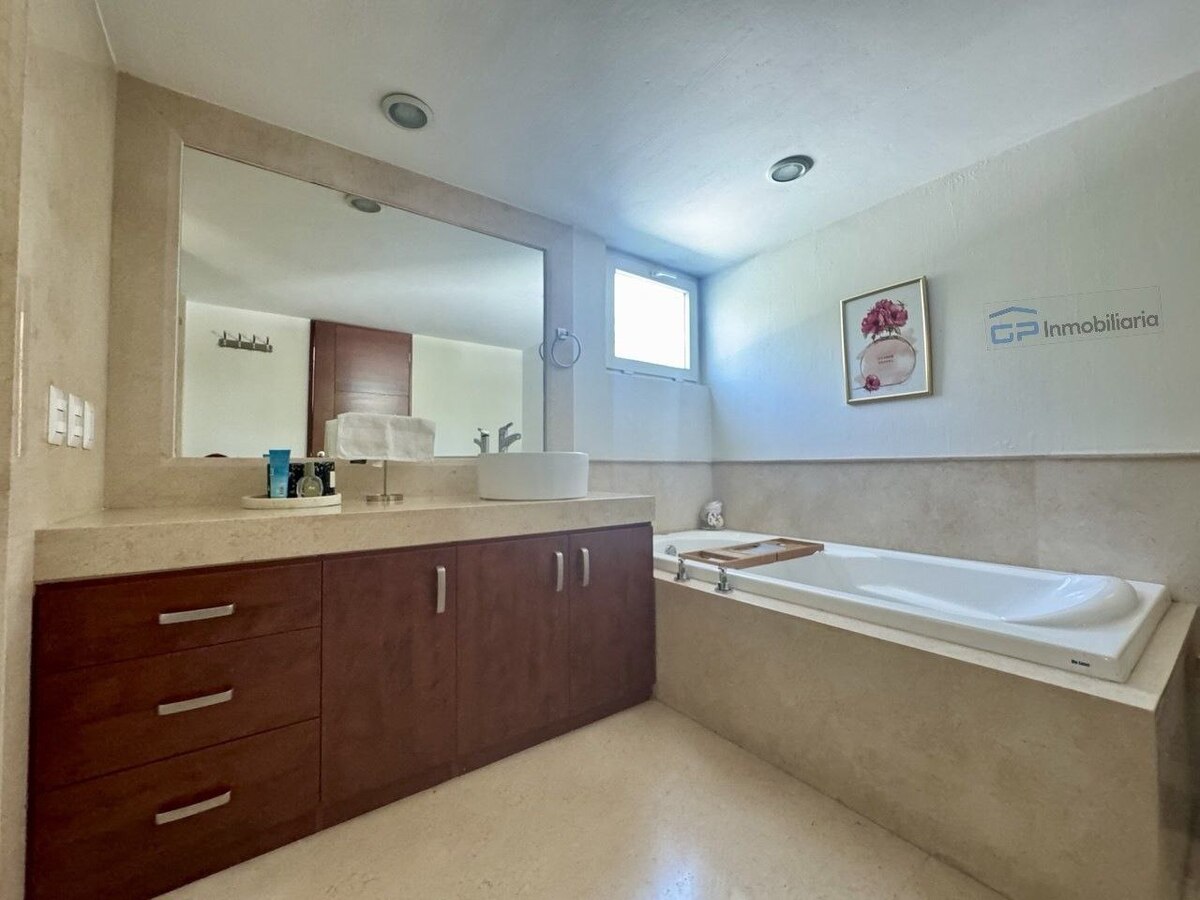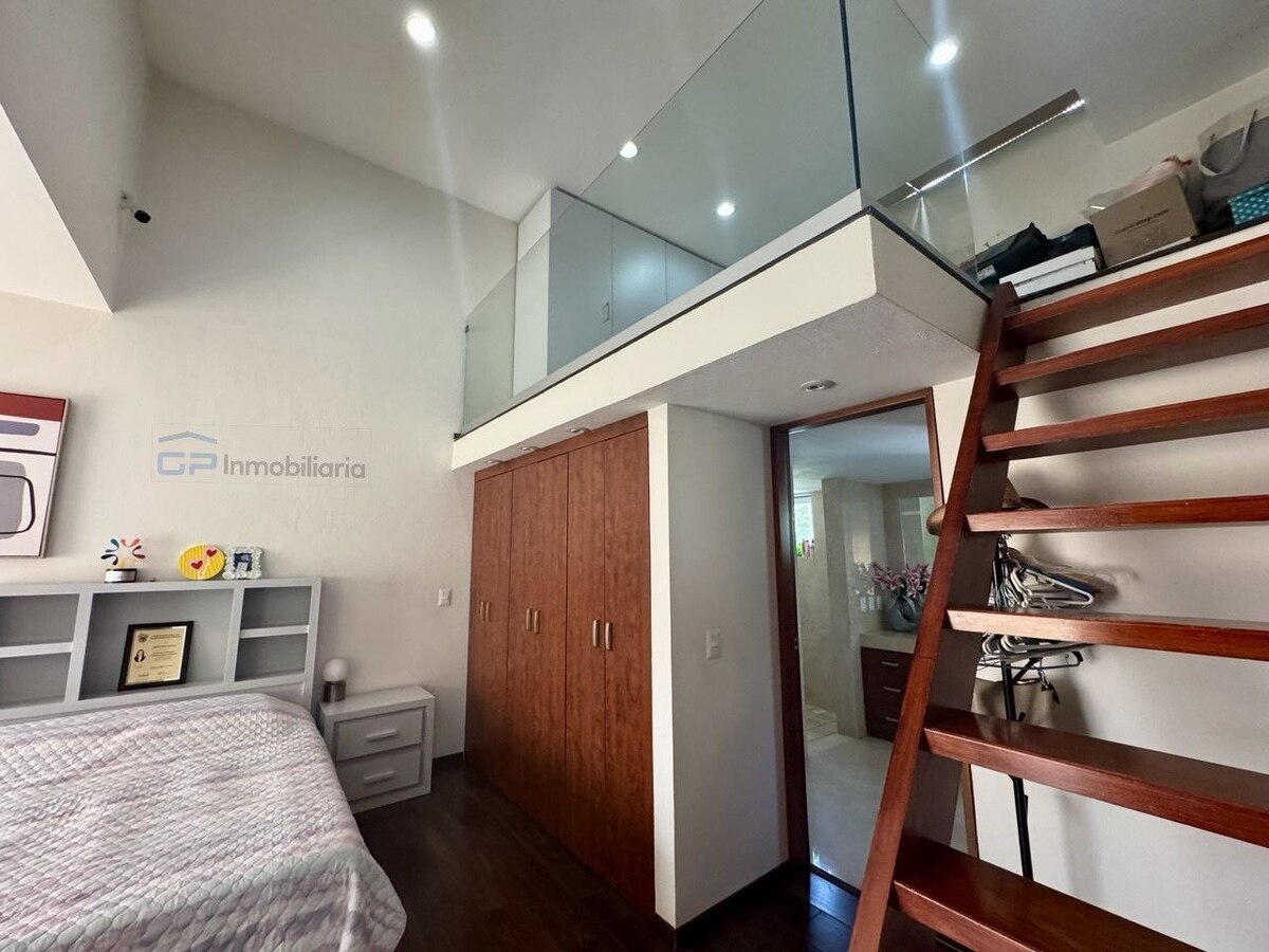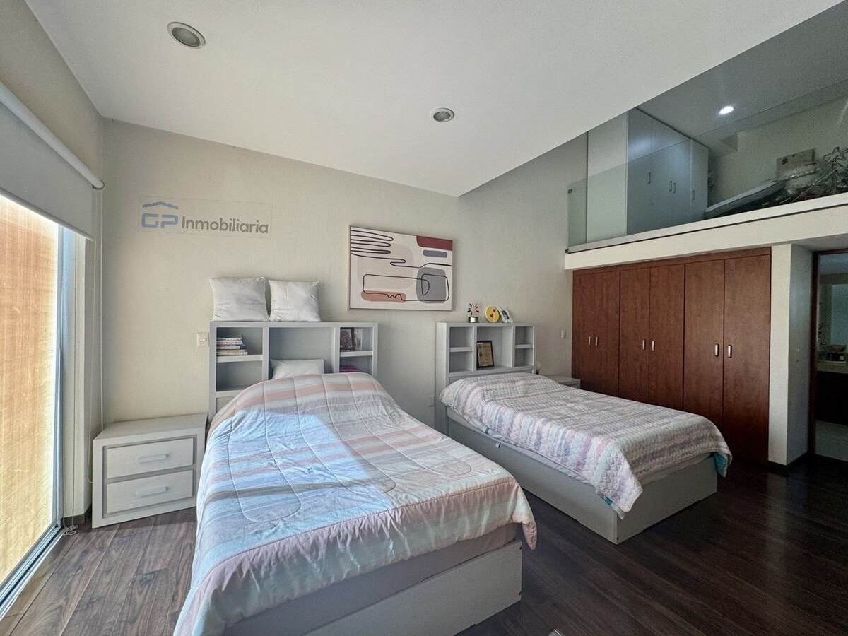 * sala de TV., 2 recámaras una de ellas con doble altura y cuenta con un tapanco y terraza así como su baño, la otra recámara con baño y jacuzzi.