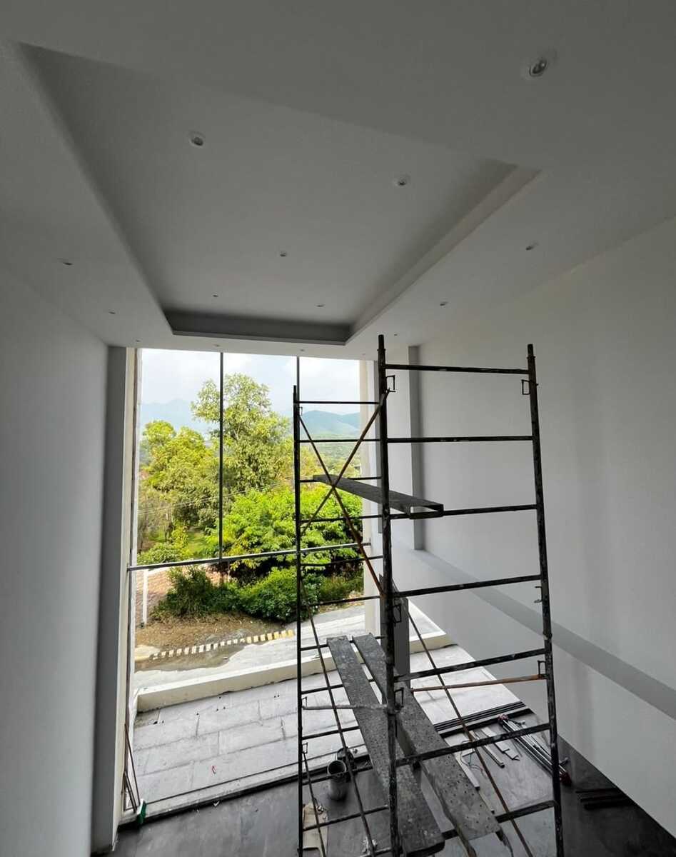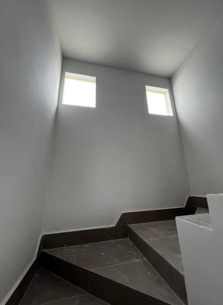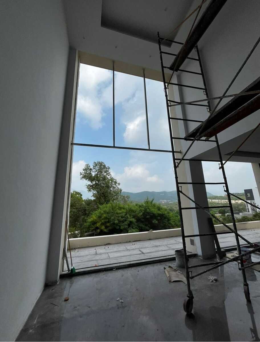 Cancelería( puertas y ventanas) CuprumEuroventSerie70 con doble vidrio y barandales interiores de vidrio templado en escaleras y balcones de recámara