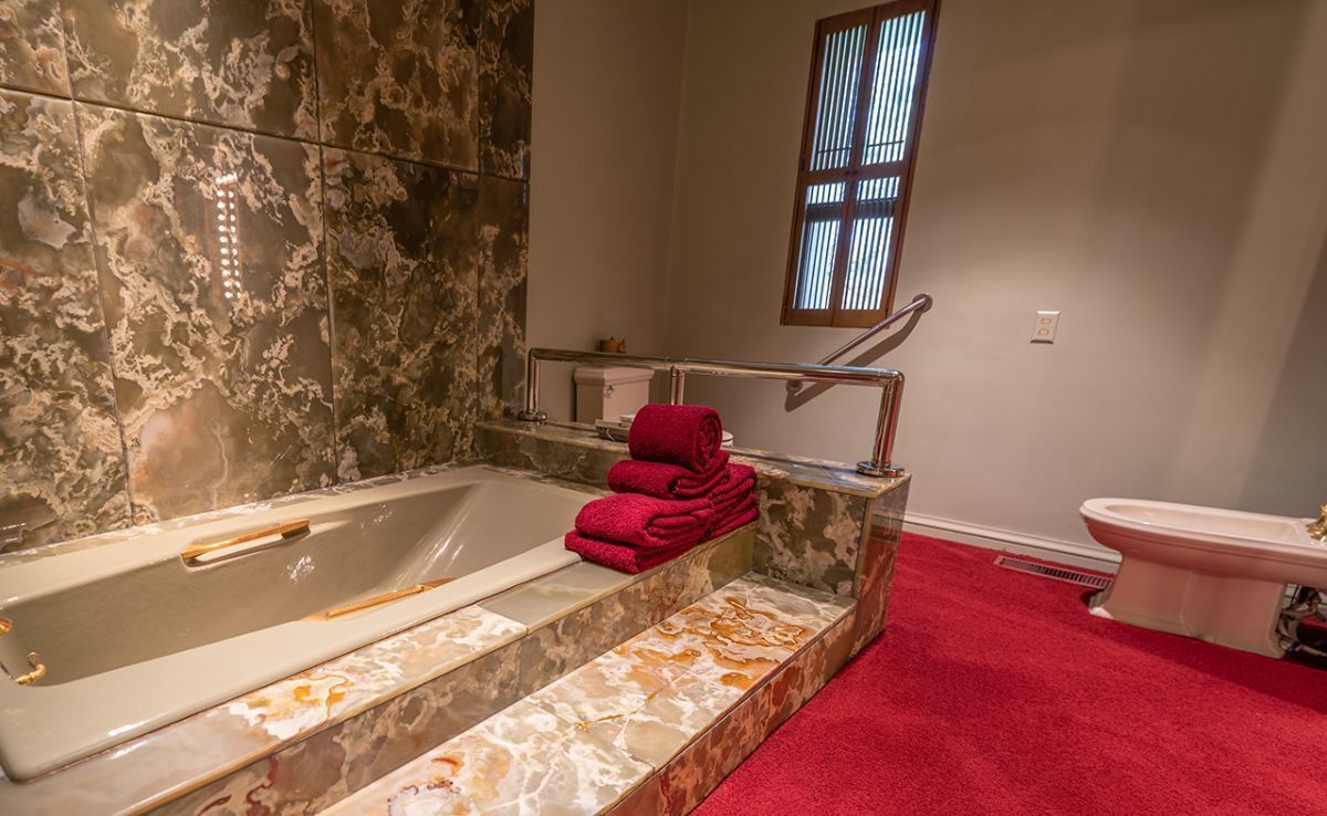 La casa cuenta con 4 recámaras con baños completos regaderas y tinas, la principal con terraza, sala, vestidor, tocador baño con tina regadera, área de gimnasio, con jacuzzi y cama de masaje y sauna; las otras 3 recámaras con sala, muebles de tocador y baños completos.