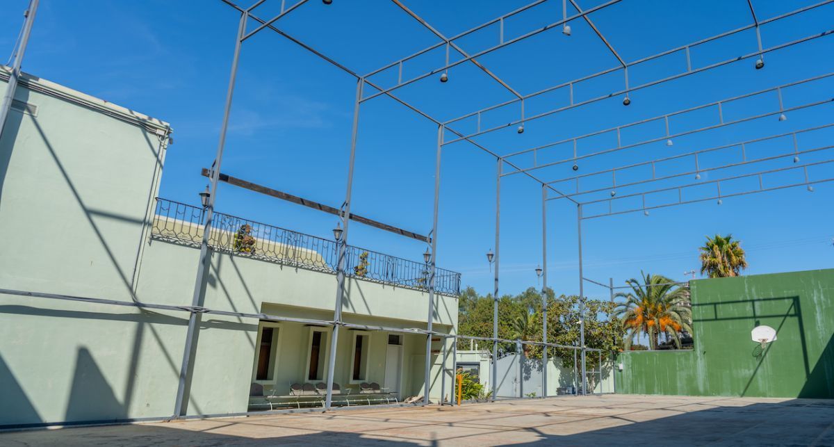 It also has a very large pediment court, a second entrance for service cars for events, a very large multipurpose room for dance classes or different activities and two bedrooms with a full bathroom for servicing the house.