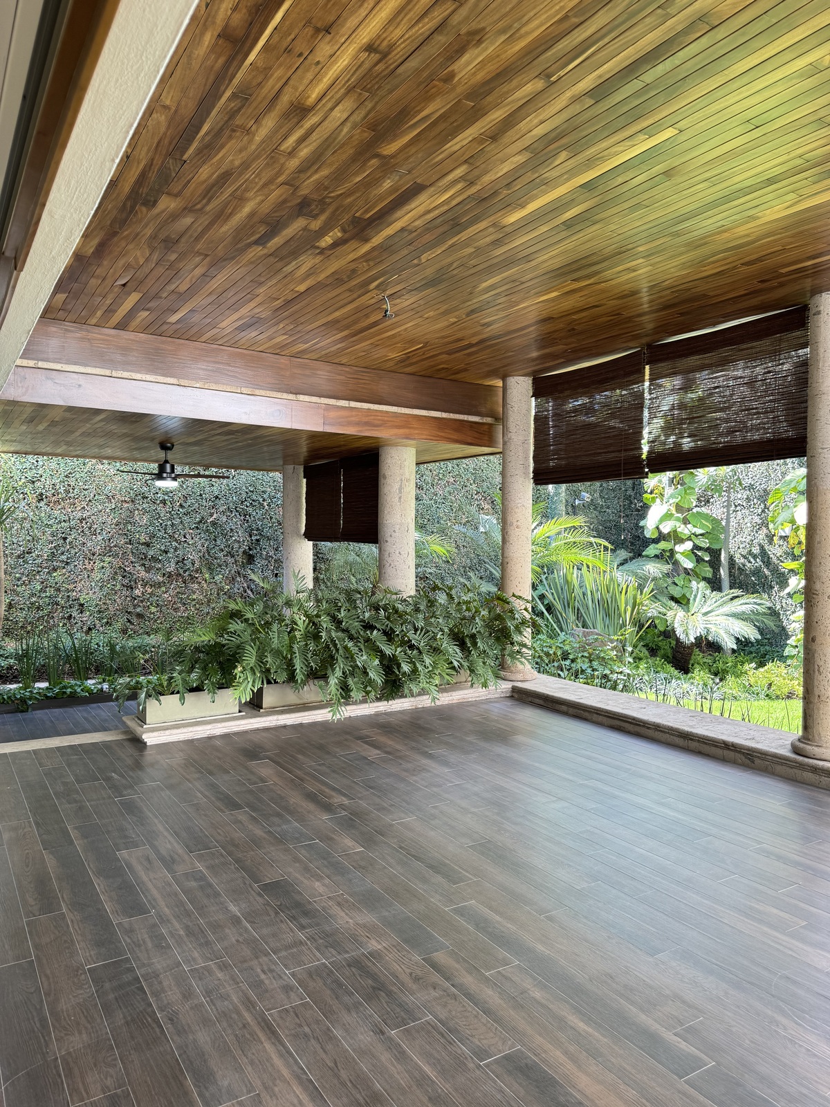 Uno de los espacios más atractivos de la residencia es su terraza, que se divide en dos áreas: una sección techada, perfecta para disfrutar de las noches frescas o las tardes lluviosas, y un área al aire libre que se presta para barbacoas, cenas al aire libre o simplemente disfrutar del sol en un entorno privado y tranquilo.