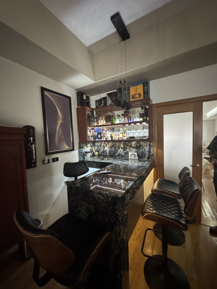 Cuarto de juegos incluye Cantina con cubierta de cuarzo aislada para evitar ruidos al exterior, chimenea de gas y leña