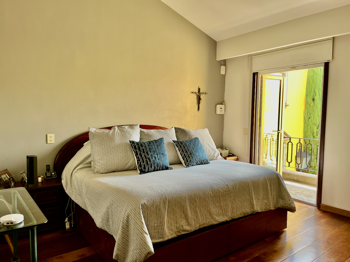 The price reflected in the advertisement does not consider closing costs or taxes or any other expenses incurred in the purchase of the property. The images, finishes, views, and aesthetic details are illustrative. Please consult with our advisors for details on plans, distributions, and a list of finishes. Price and availability are subject to change without prior notice. Verify with our advisors for updated information. The measurements are approximate and must be verified with property titles and/or tax receipts. The buying and selling process is carried out before a public notary. This publication is not a public offer. All transactions require the express authorization of the owners and must be carried out in accordance with our business practices. Credit operations: The total price varies according to credit amounts and notarial expenses. Please consult for more details. Payment methods: Payment can be made with personal resources or with a mortgage loan from any public or private institution, subject to the negotiation reached by the parties in the sale and the policies of the corresponding institution. Please check our privacy notice on our website.Encantadora residencia totalmente remodelada en condominio horizontal de solamente 13 casas, con un hermoso jardín con fuente al centro de las casas. Estratégicamente ubicada a solo 700 metros de Santa Fe y a pocos kilómetros del impresionante Desierto de los Leones. Excelentes accesos y sobre todo, muy bonito conjunto para vivir con muy buena vigilancia. ¡Esta espaciosa propiedad lo tiene todo!, construida sobre 496 metros cuadrados de terreno y 410 metros de construcción ofrece un total de 4 recámaras, 3 baños completos y 2 medios baños; con un amplio y luminoso diseño que incluye una generosa sala, comedor, acogedora sala de estar, pequeña oficina, jardín, amplia terraza, cocina cerrada, dos amplia alacenas, antecomedor, cuarto de servicio, área de lavado, bodegas, techos altos. ¡Una oportunidad única para una vida plena y confortable a un paso del bosque y a 5 minutos de Santa Fe!