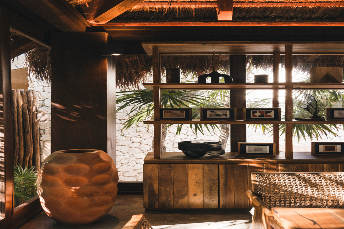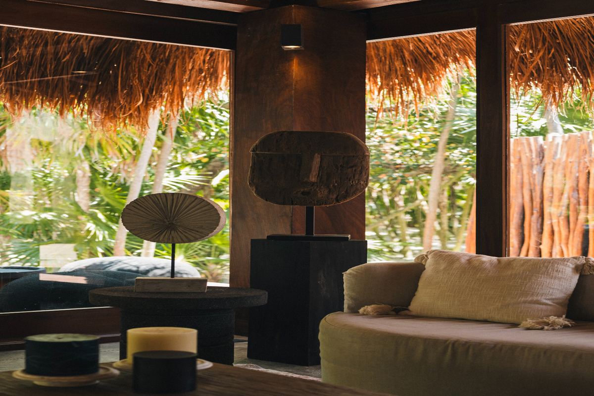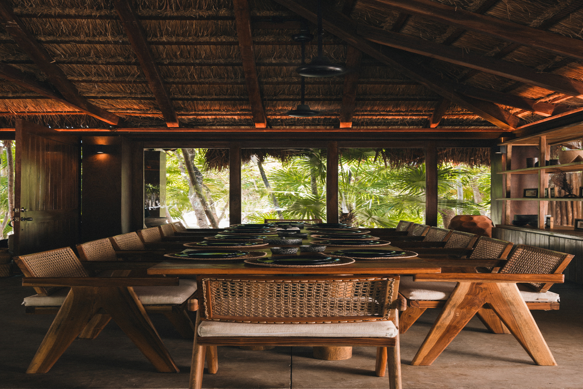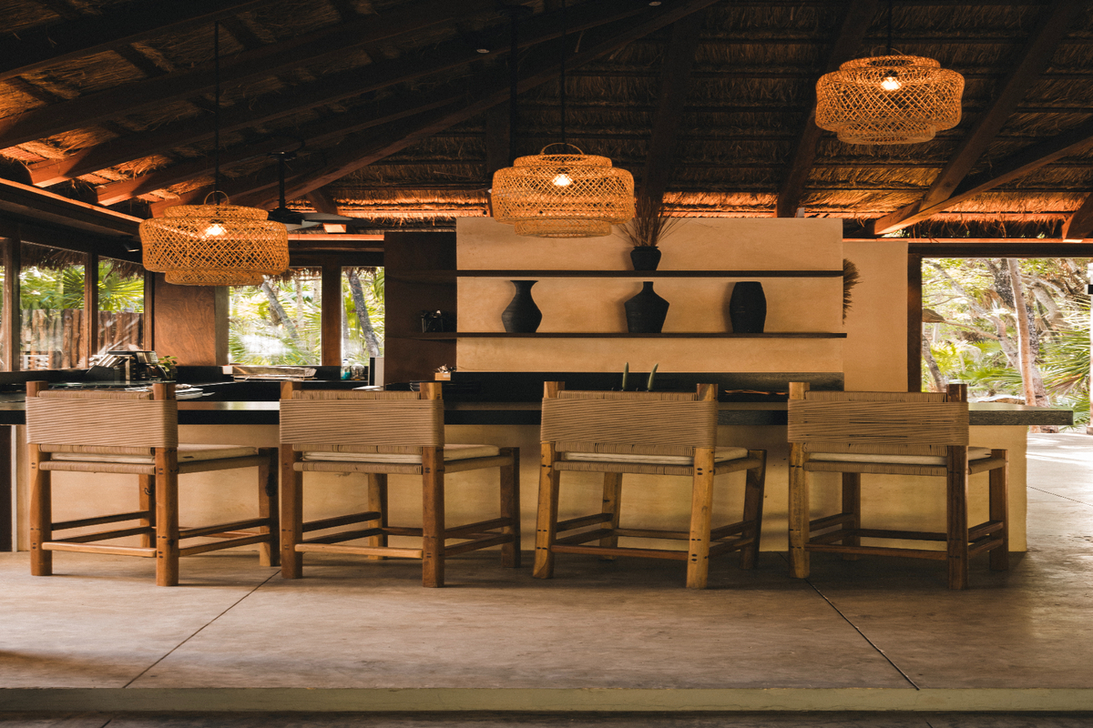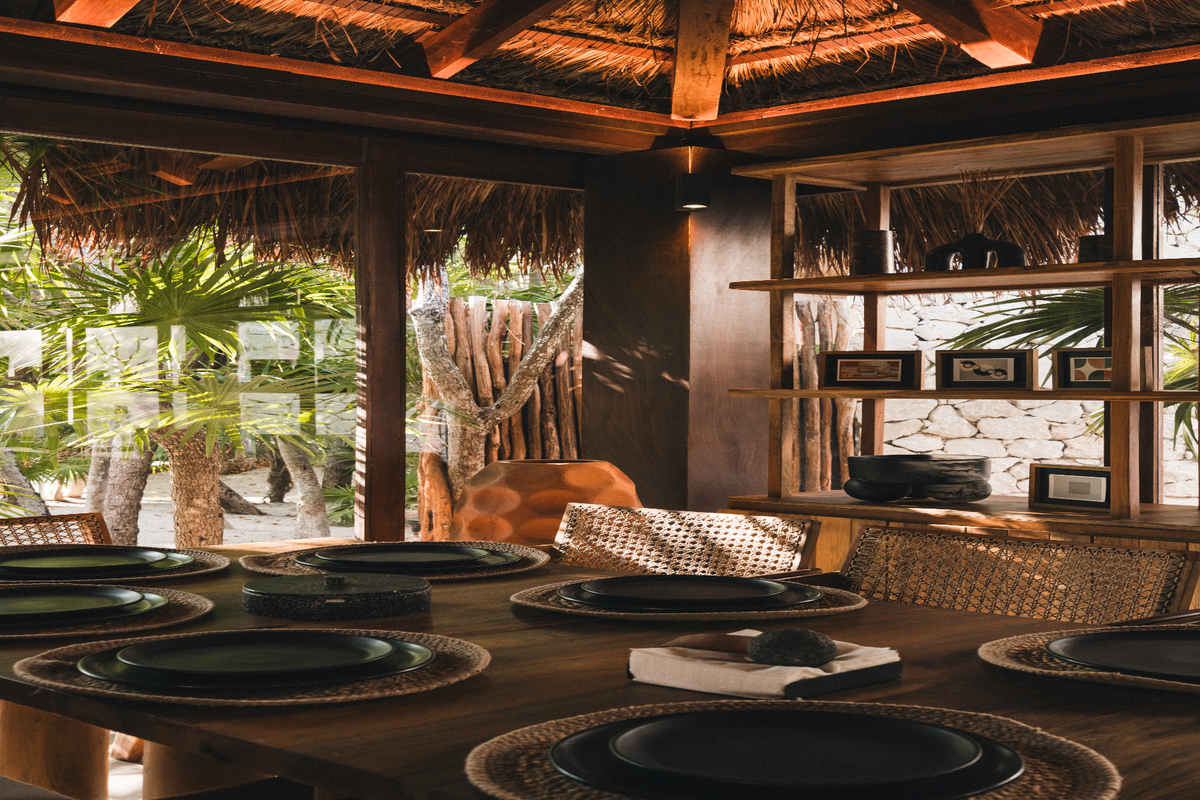 El diseño arquitectónico se integra de manera armónica con el paisaje, logrando un balance entre sofisticación y respeto por la naturaleza. La gran palapa de la sala, con vistas abiertas al mar, se convierte en el corazón de la casa: un refugio donde lujo, exclusividad y naturaleza crean un oasis inigualable en la Riviera Maya.
