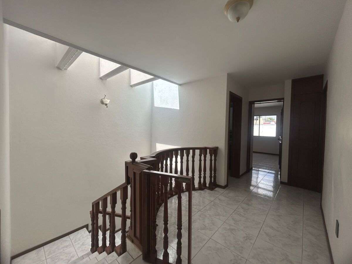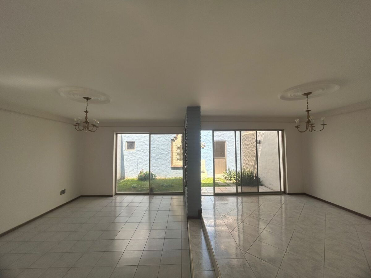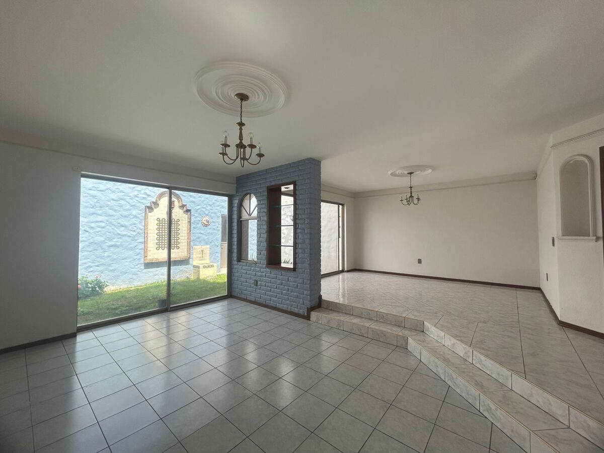 Amplia casa habitación de dos niveles, cuatro recámaras con clóset, dos baños completos y medio baño para visitas, área de sala, espacio para comedor, cocina integral con estufa, campana y barra, cuarto de servicio con baño, cuarto de lavado, patio de servicio, jardín interior, tanque estacionario, interfón y cochera con portón automático para dos autos.