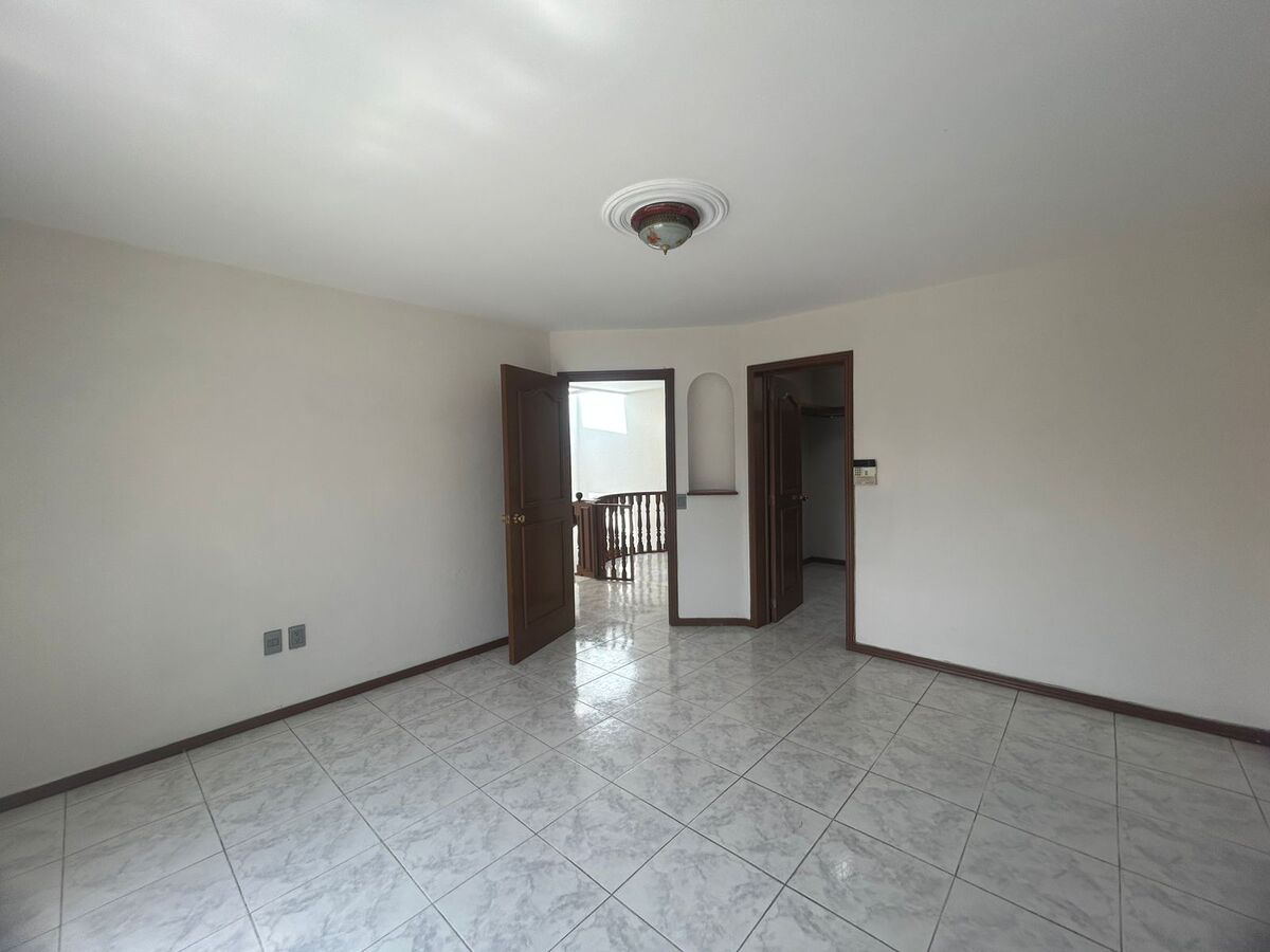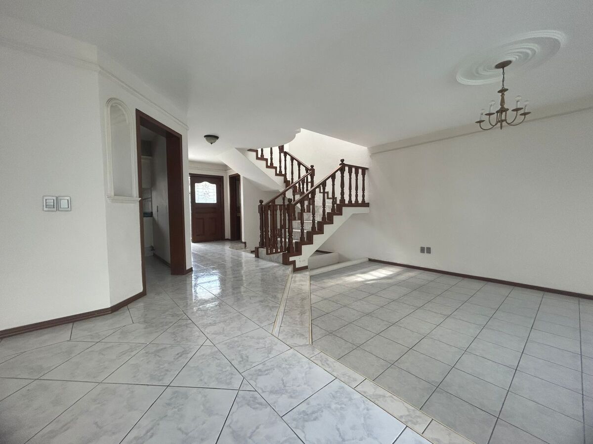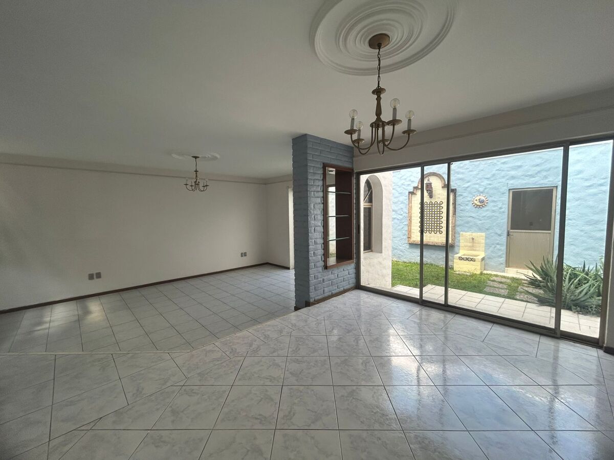 Amplia casa habitación de dos niveles, cuatro recámaras con clóset, dos baños completos y medio baño para visitas, área de sala, espacio para comedor, cocina integral con estufa, campana y barra, cuarto de servicio con baño, cuarto de lavado, patio de servicio, jardín interior, tanque estacionario, interfón y cochera con portón automático para dos autos.