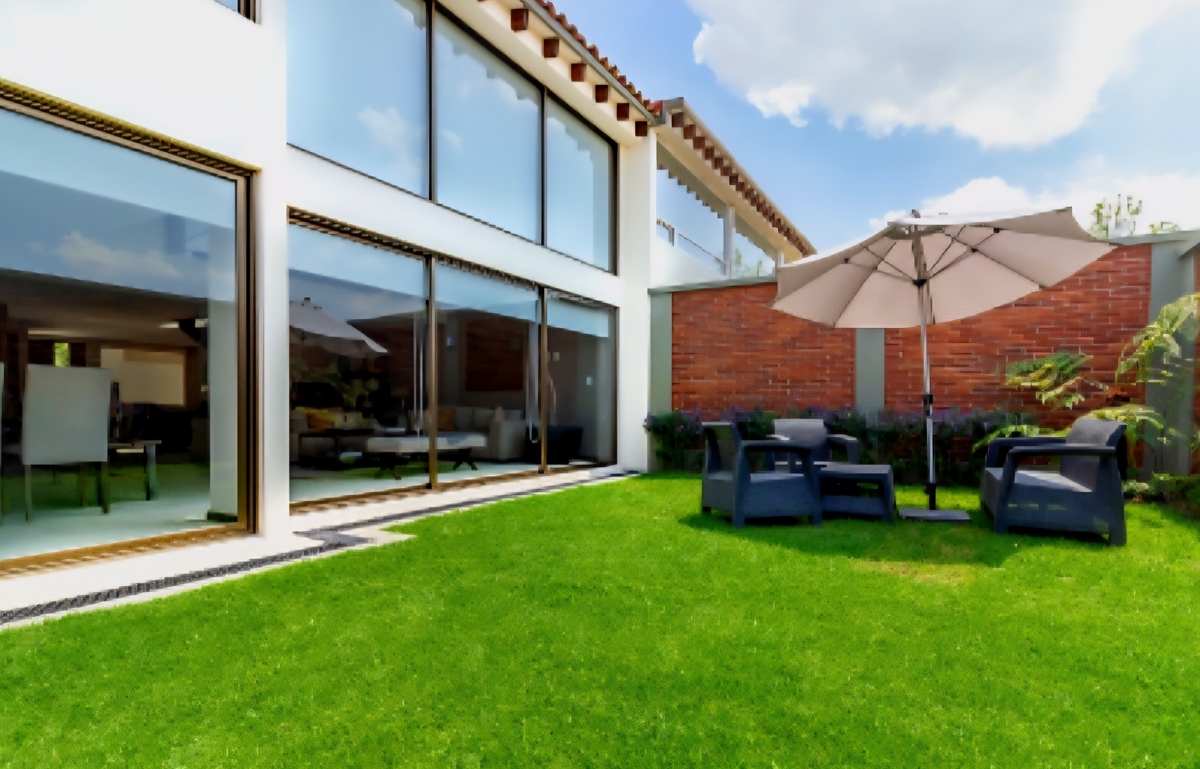 Un hermoso jardín privado que se convierte en el alma del hogar.