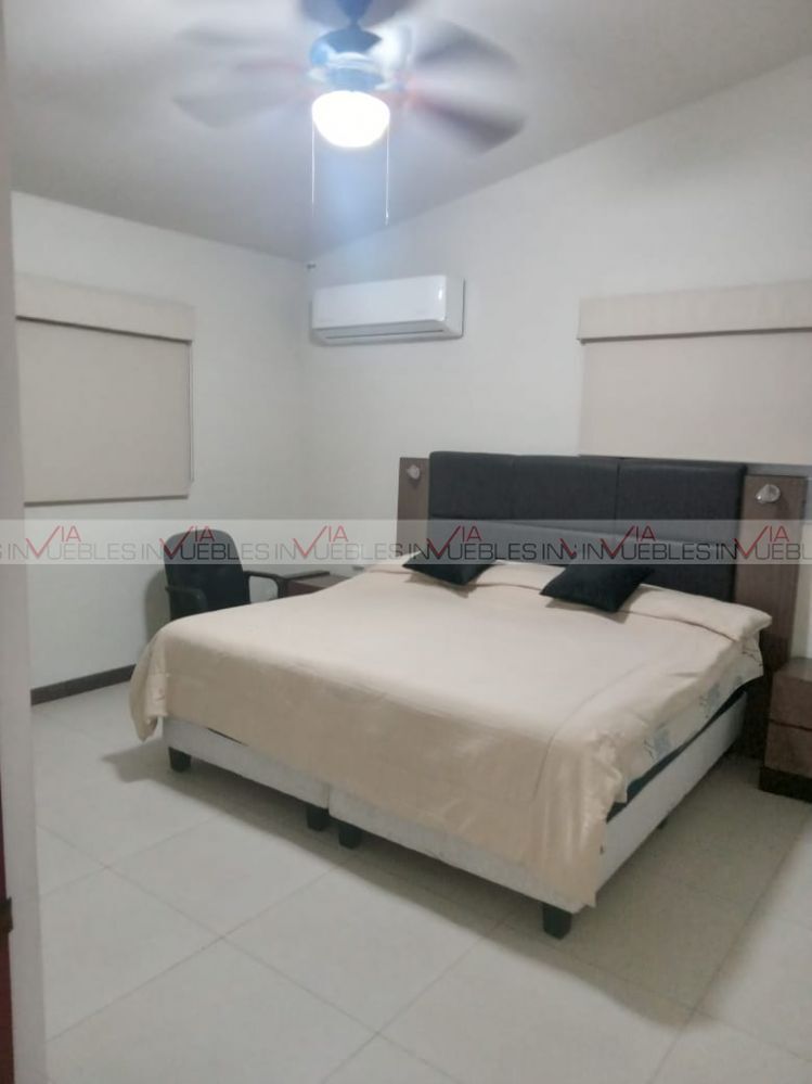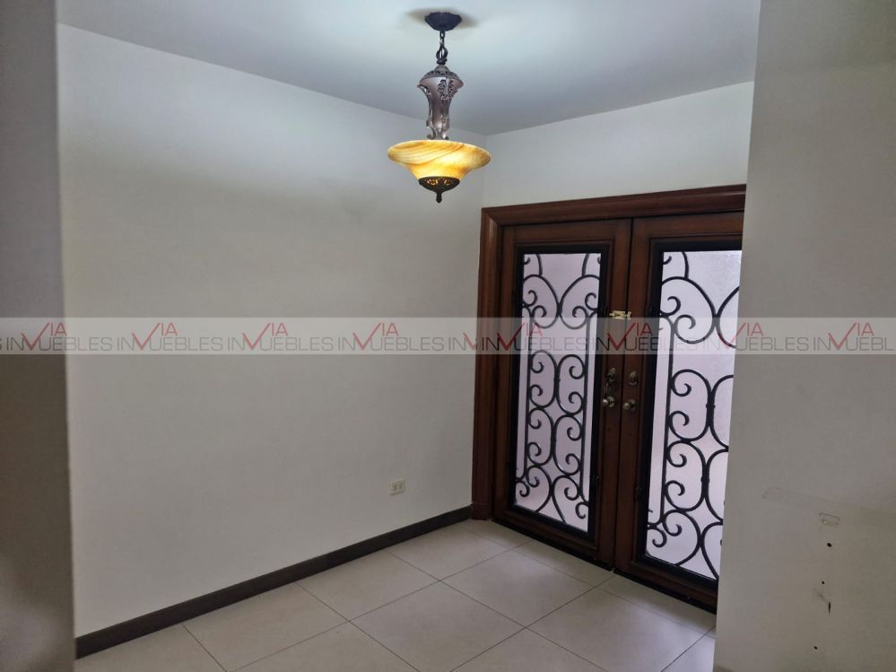 Upper floor: 1 master bedroom with a dressing bathroom, mini-split and ceiling fan, 2 individual bedrooms with full bathrooms, mini-split, ceiling fan, closet. Independent services for water, electricity, and gas (not included in rent). Equipped with a boiler, integral kitchen, fans, and cold/heat air conditioning, it has easy access for elderly people. It has a privileged location due to its proximity to the avenues of Lázaro Cárdenas, Vasconcelos, Loma Larga Tunnel, Gómez Morín, and easy access to them. Close to Plaza Fiesta San Agustín, schools, banks, hotels. Safe area with privacy. There is a neighborhood park one block away. Pets are not allowed. No smoking. Id Gvia: 118461Ofrezco casa en renta en zona Residencial San Agustín, 1er sector. Tiene 2 plantas con cochera techada para 2 autos y portón eléctrico. Planta baja: recibidor, sala, comedor, cocina integral, lavandería, 2 minisplit, candiles, persianas, 1 baño completo y medio baño.