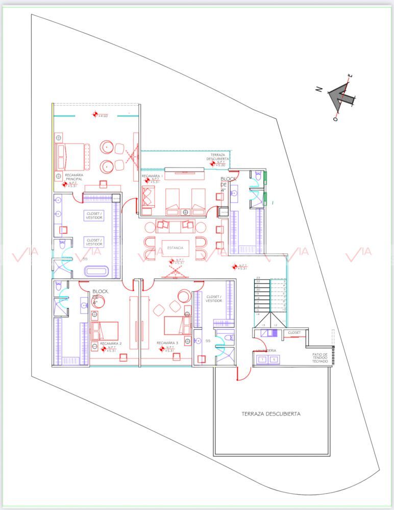 Planta Alta: 4 recamara c/u con baño vestidor, estancia familiar, terraza de 61 m2 y lavandería