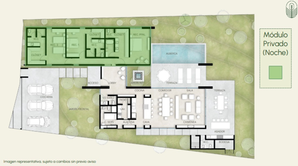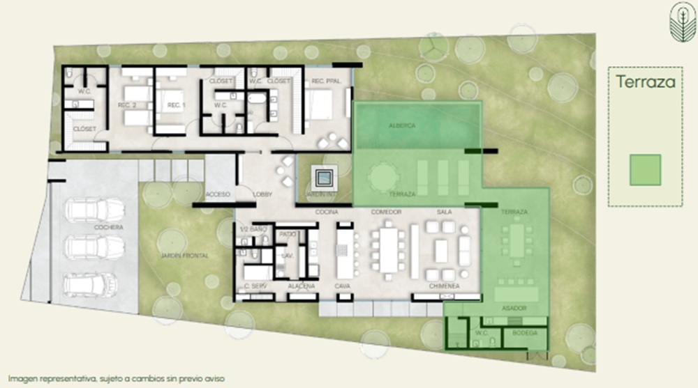 Prices subject to change without prior notice.Fraccionamiento en el Barrial con 6 hermosas residencias de lujo, en un sólo piso, que cuentan con 3 Recámaras con baño y walk-in closet, sala, comedor, cocina, lavandería, medio baño visitas, cuarto de servicio, terraza, bodega, cochera 3 autos