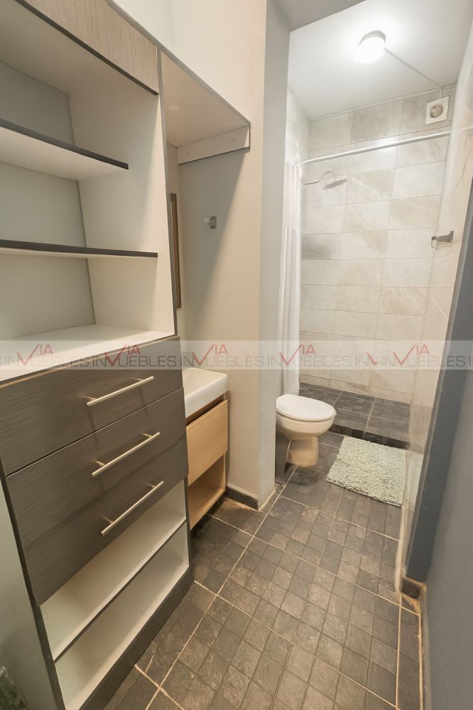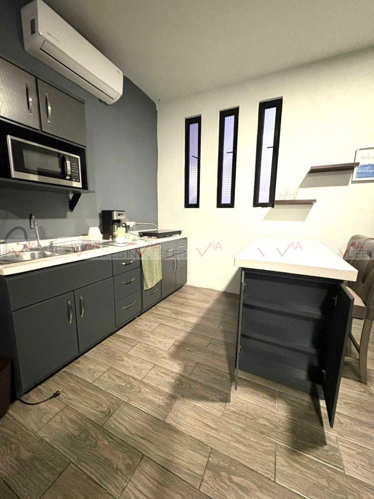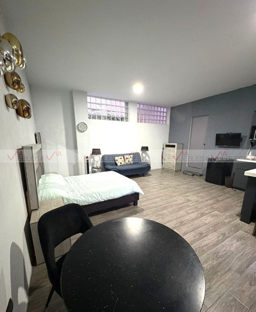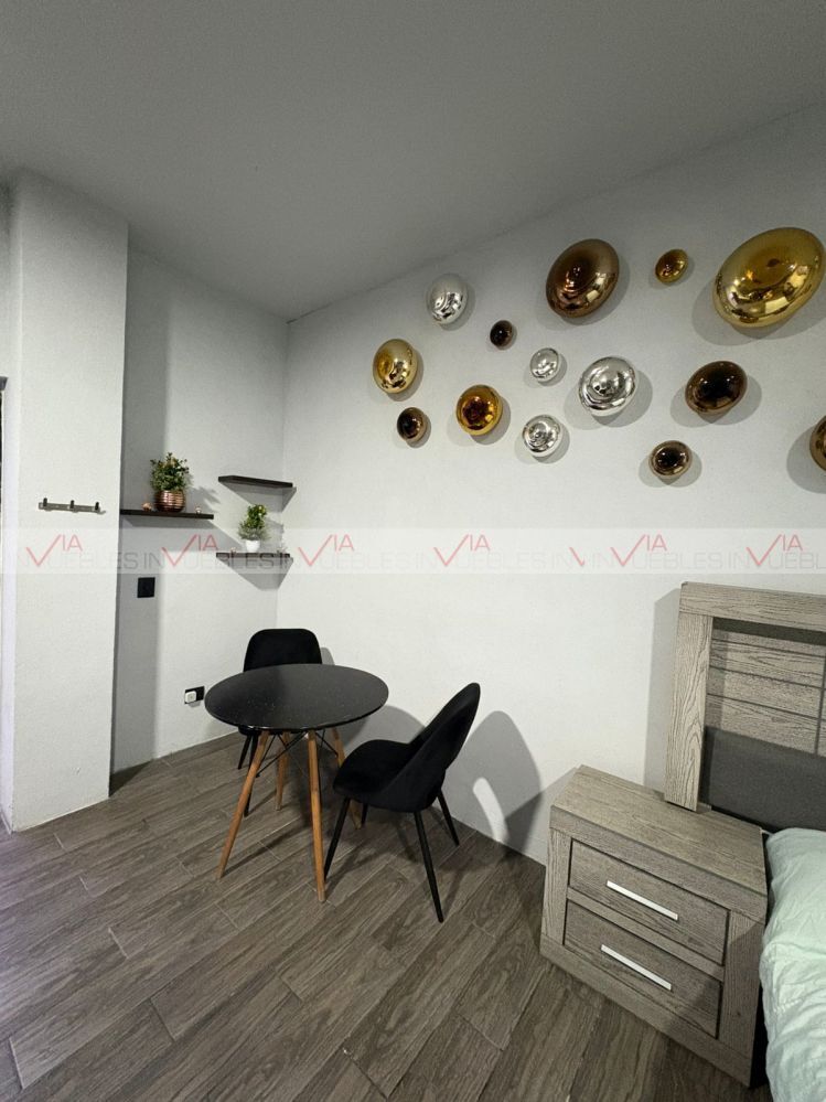 Modern and cozy loft-style apartment, located in the Miravalle area in the municipality of San Pedro, situated in a privileged area as it is a private neighborhood with beautiful green areas. The apartment has 1 bedroom, 1 bathroom, equipped kitchen, fridge bar, microwave, mini-split, and a spacious closet. Services included. Independent entrance, six-month contract subject to renewal Id Gvia: 118846.Moderno y acogedor departamento tipo loft, ubicado en zona miravalle en mpo de san pedro, ubicado en una zona privilegiada por ser colonia privada con hermosas áreas verdes. El depto. cuenta con 1recamara 1 baño, cocina equipada, frigo bar, microondas, minisplit y un espacioso closet. Servicios incluidos. Entrada independiente, Contrato a seis meses sujeto a renovación Id Gvia: 118846