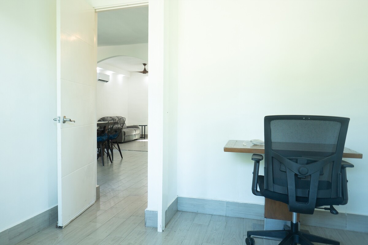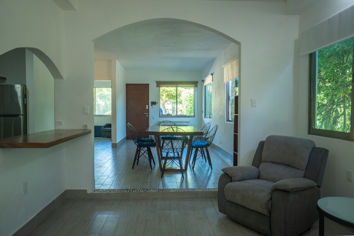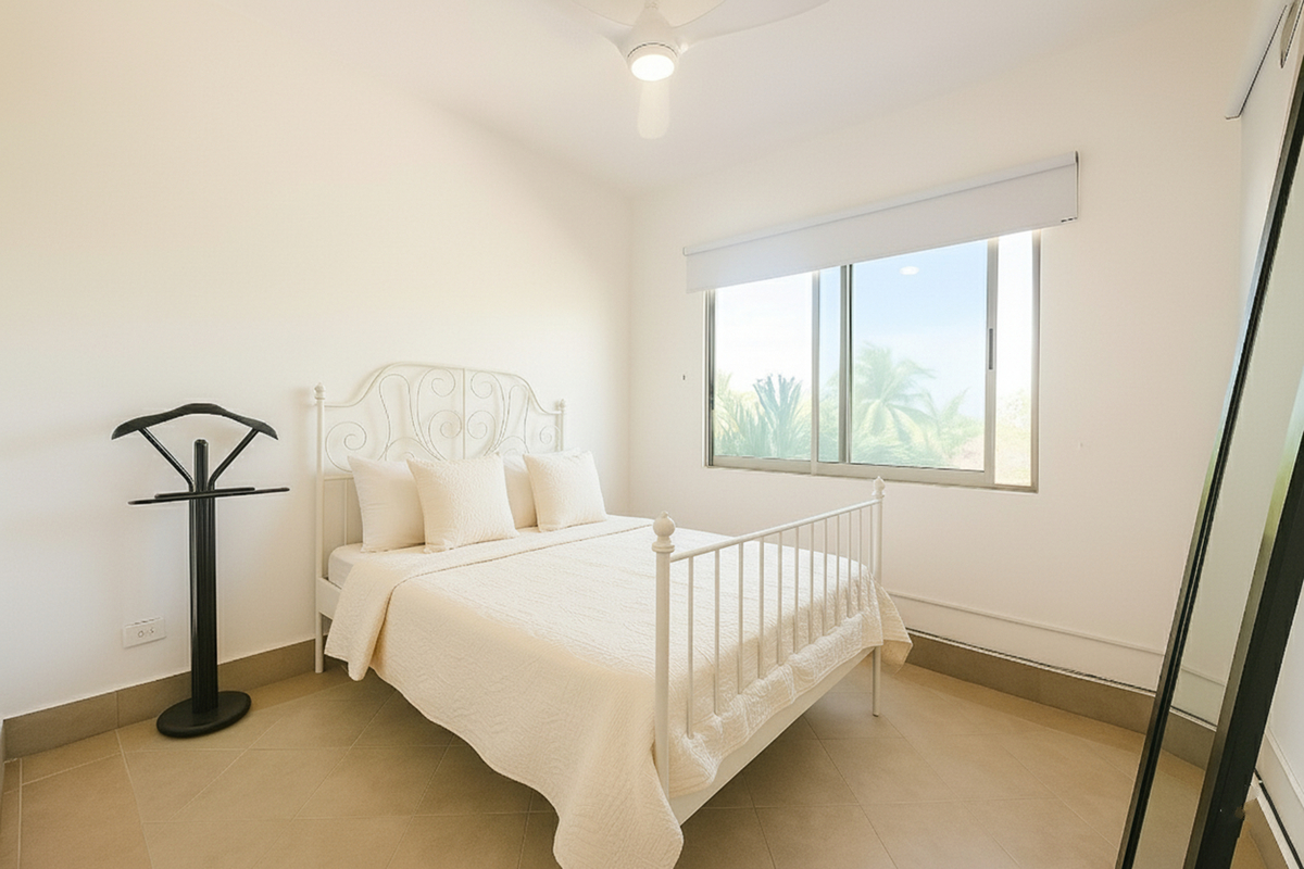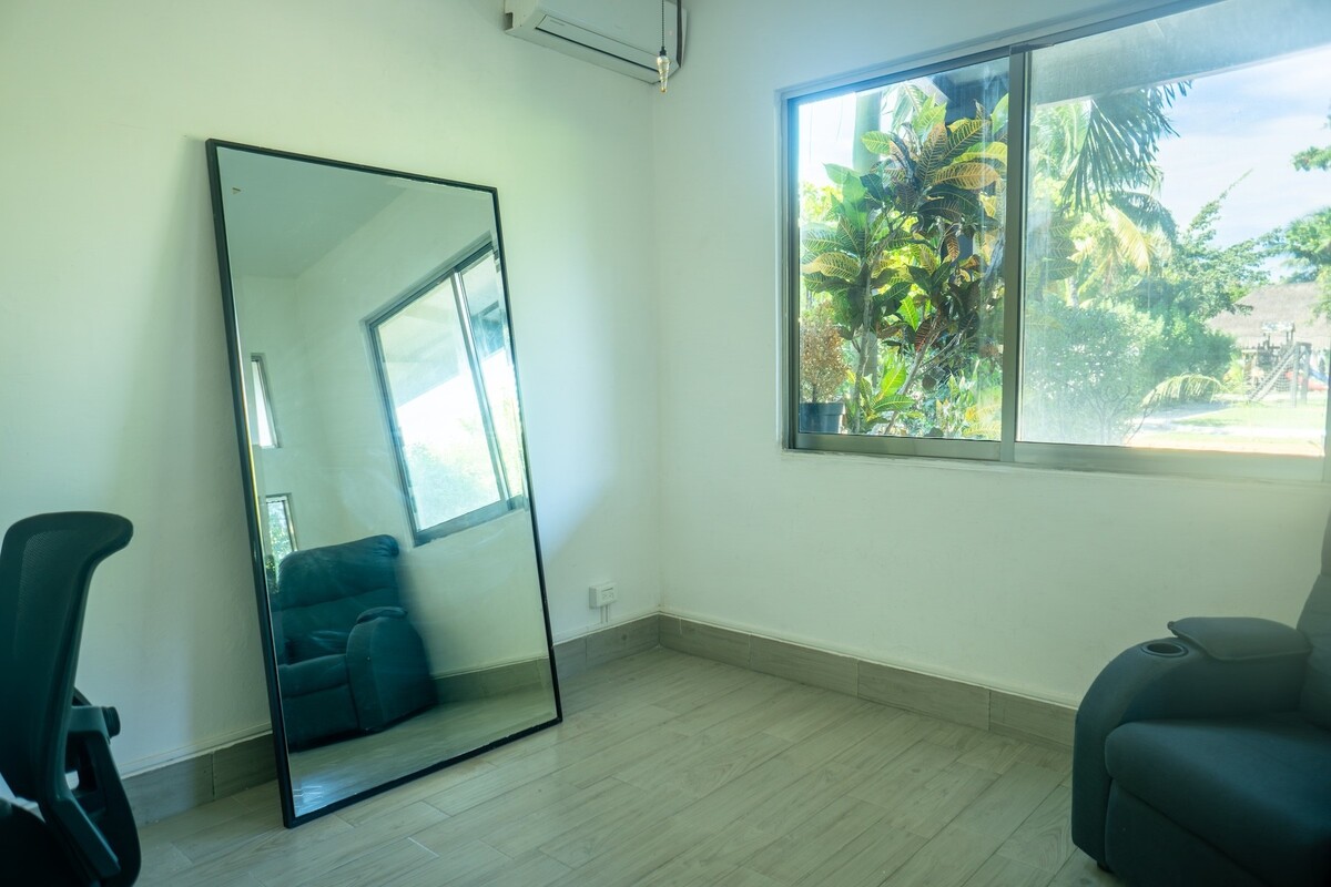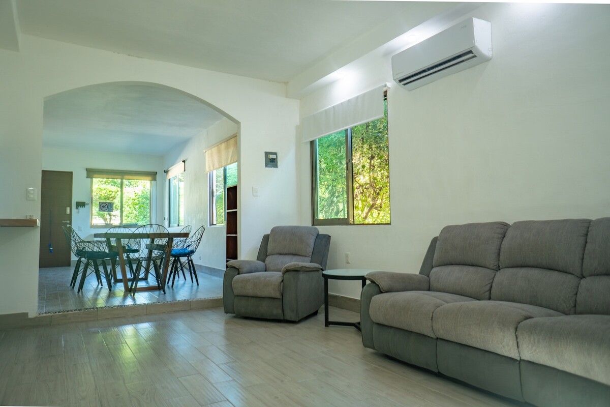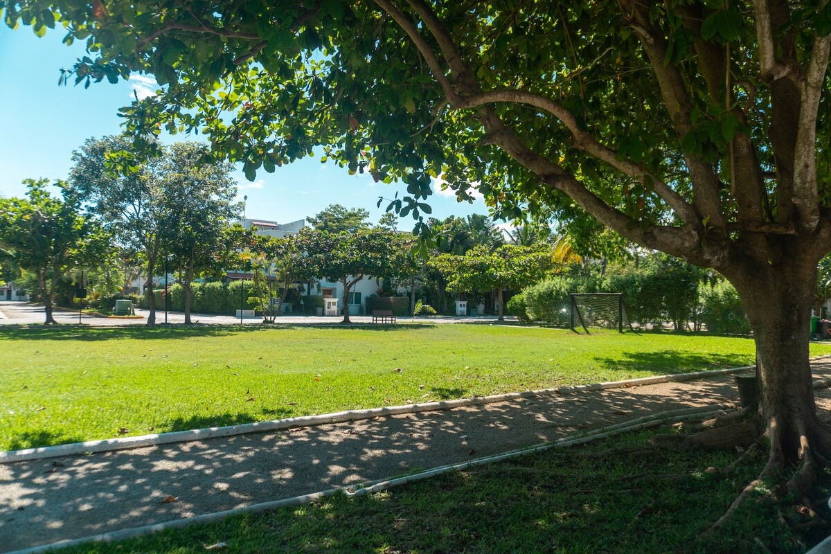 La propiedad disfruta de una ubicación privilegiada frente al área verde del parque común, con cancha de futbol, alberca y palapas. Se vende semi amueblada, con aires acondicionados tipo mini split y ventiladores de techo en cada recámara.