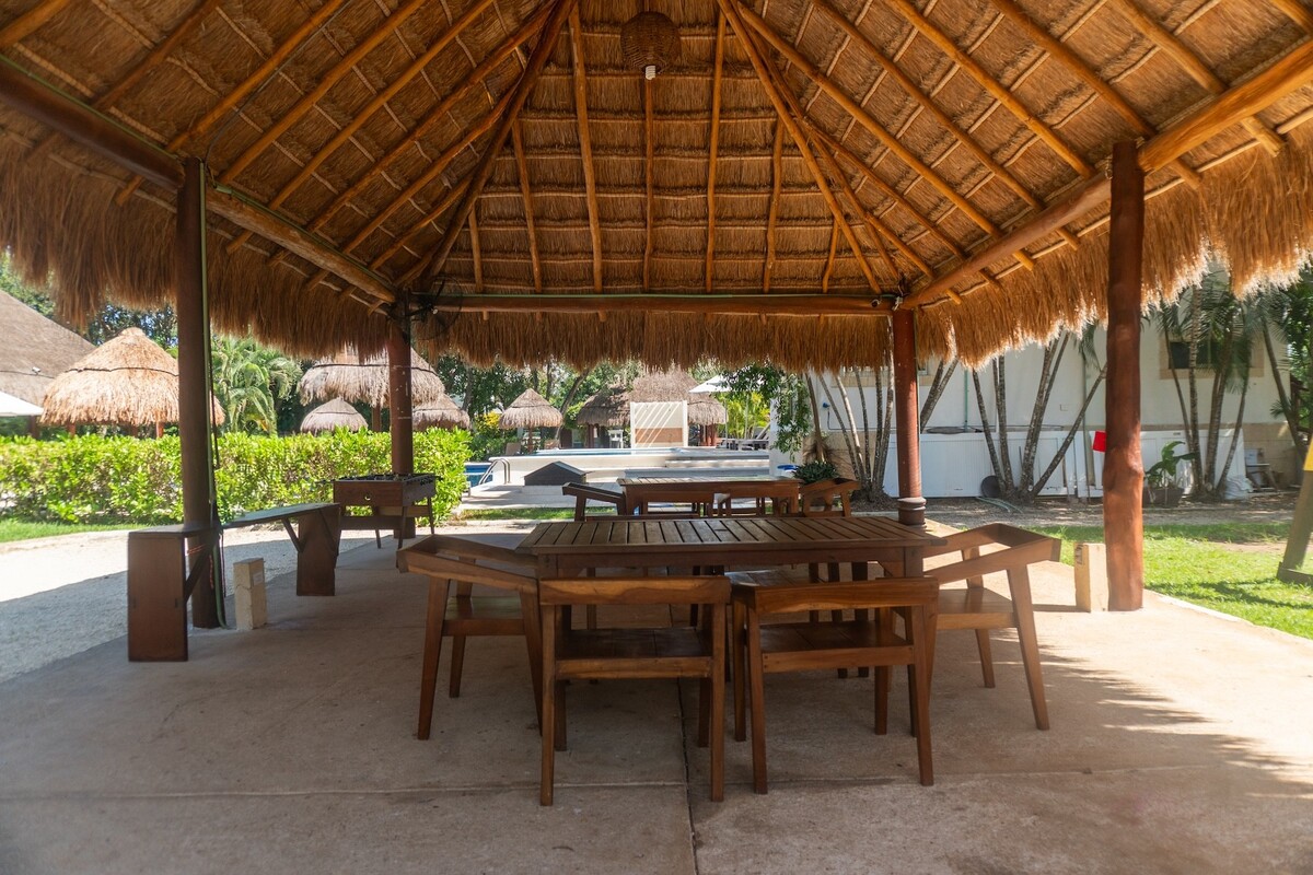 Sus áreas comunes han sido diseñadas para disfrutar al aire libre y fomentar la convivencia. Cuenta con una amplia alberca con chapoteadero, baños con regaderas, tres palapas equipadas con dos áreas de parrilla, así como juegos infantiles y áreas recreativas para toda la familia. Además, dispone de estacionamiento para visitantes, lo que brinda comodidad en cada reunión o evento social.