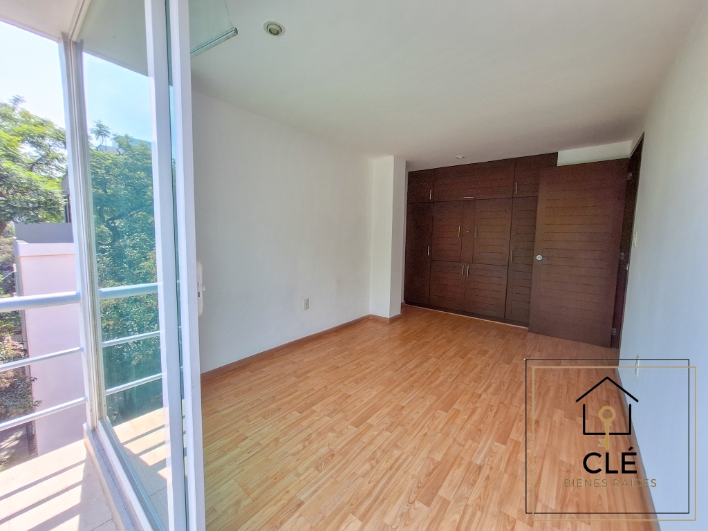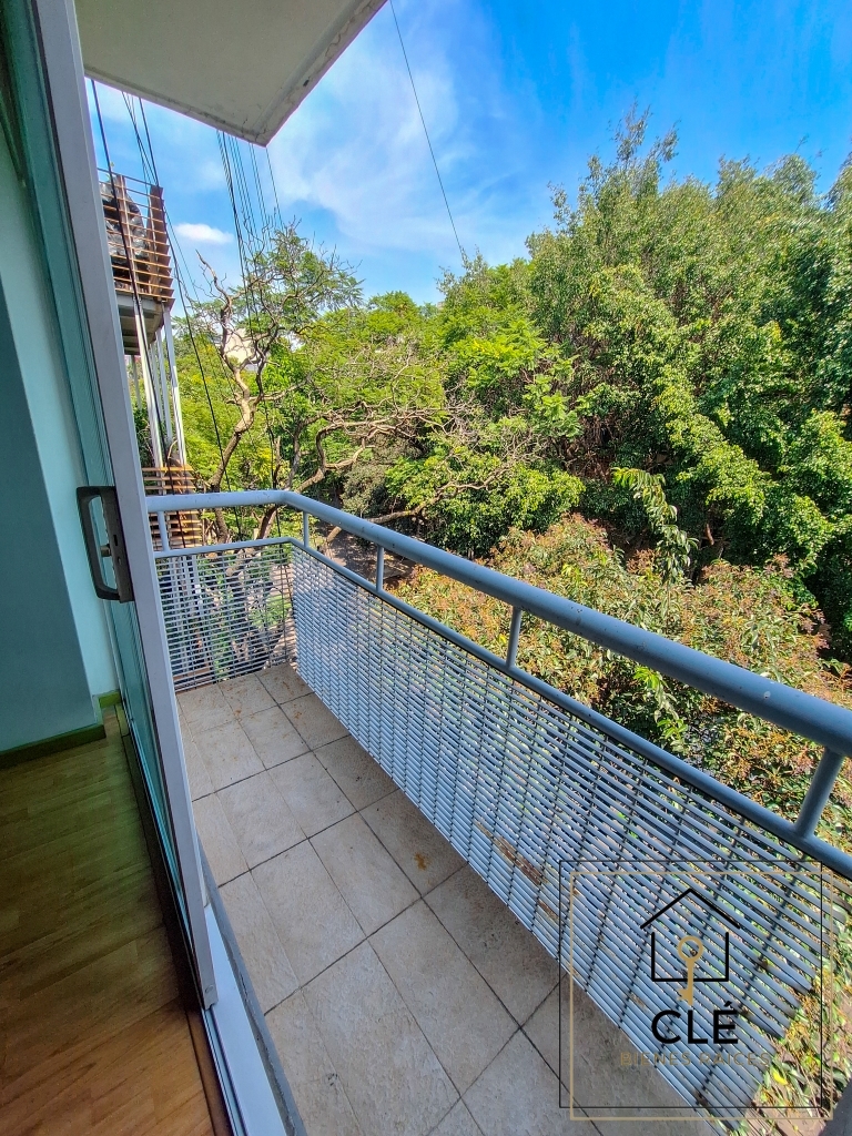 Ubicado en el 4º piso con elevador, este departamento ofrece una vista arbolada y un ambiente tranquilo. El edificio cuenta con servicio de conserje y excelente mantenimiento (cuota incluida en la renta.)