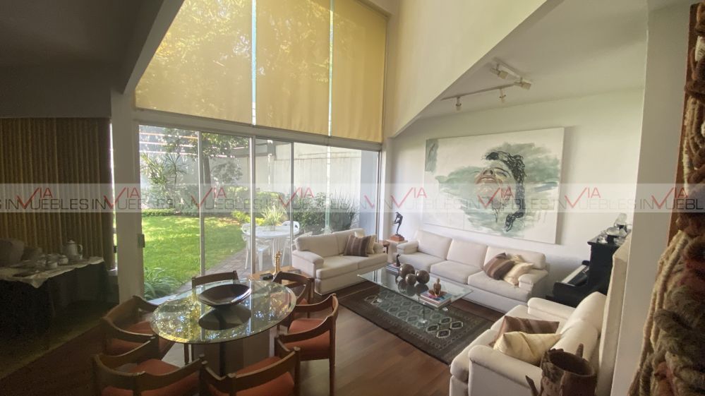 comedor y sala de doble altura con ventanal al jardín