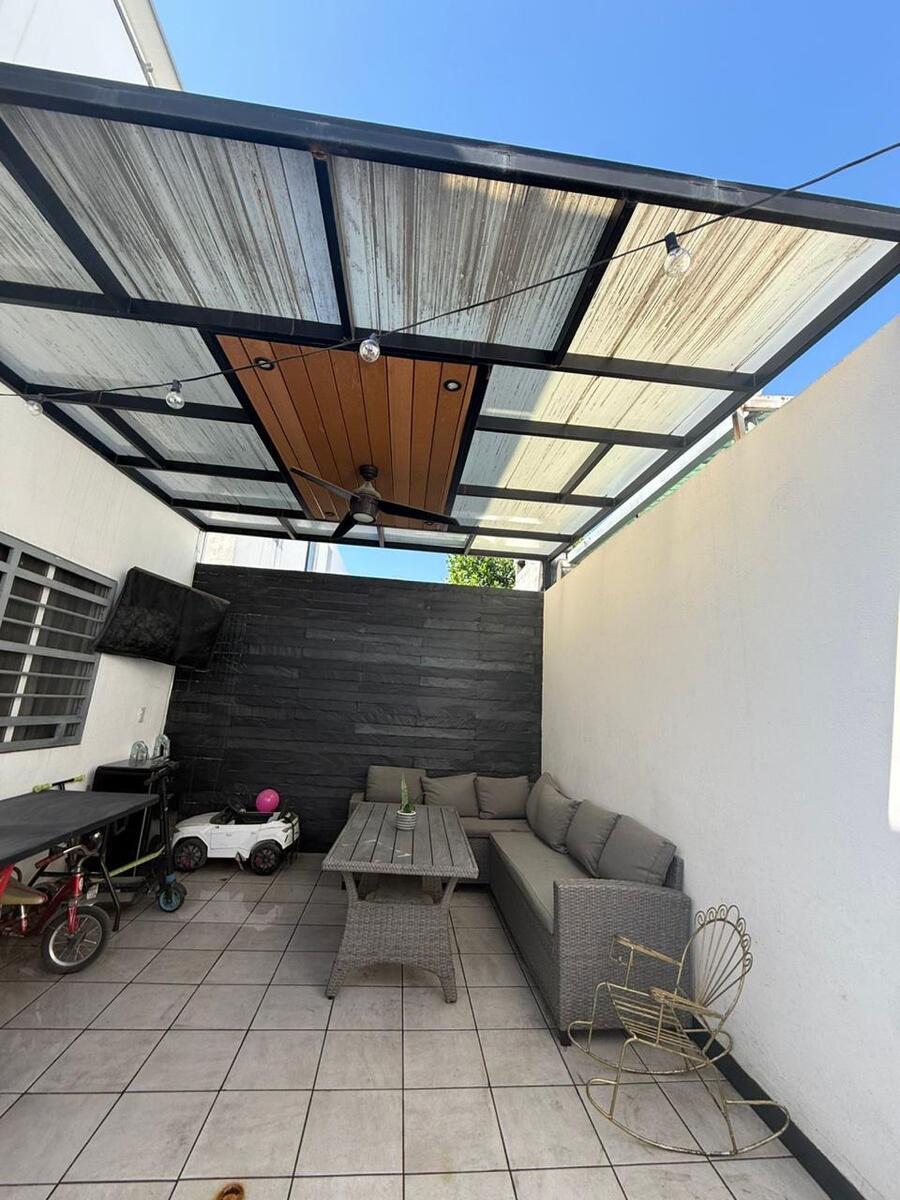 Sala, comedor, cocina, lavandería, baño de visitas, amplio patio con techo de policarbonato